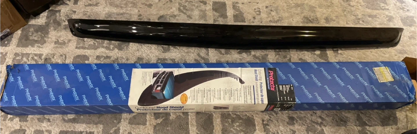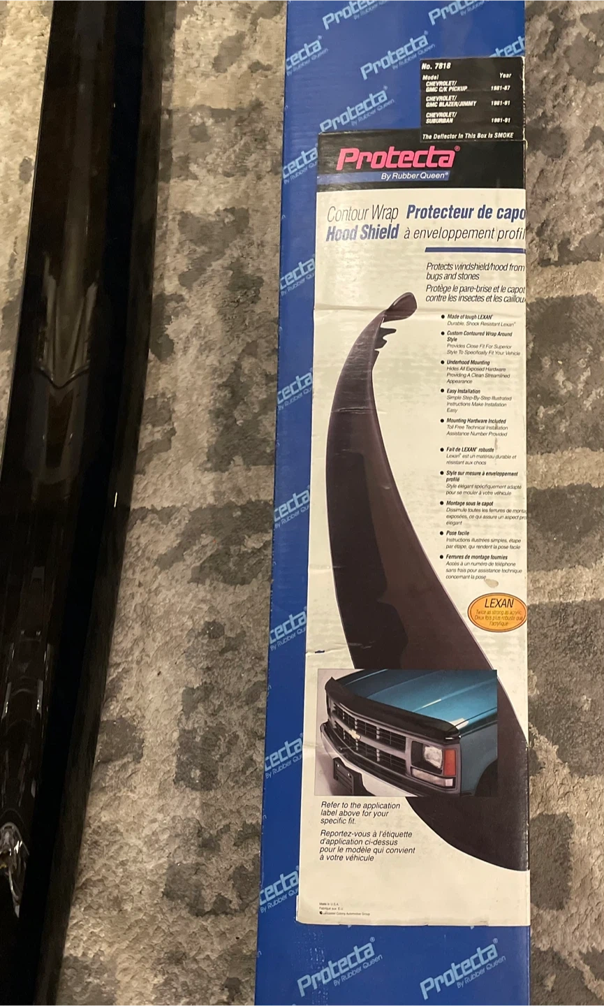 15Selling a Protecta Contour Wrap Hood Shield in black. This hood shield protects your windshield from bugs and stones. It features an easy installation with no-drill installation. It is made of LEXAN material. Refer to the application guide to ensure it fits your vehicle. The box is included! No 7818 Fits; Chevrolet/GMC pick-up 1981-87 Chevrolet Blazer/Jimmy 1981-91 Chevrolet Suburban 1981-91