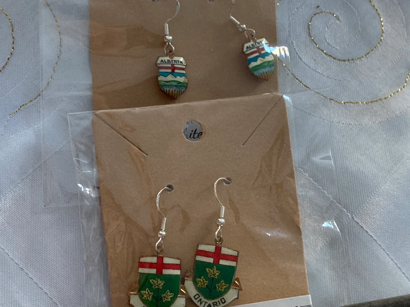 186Cute pair of earrings featuring the Alberta and Ontario provincial emblems. Perfect for showing off your Canadian pride! Sterling Silver Posts $5 per pair Most provinces in stock