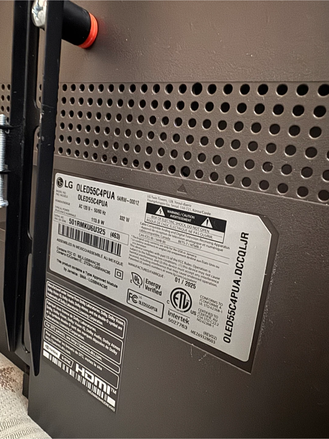This LG OLED smart TV boasts a 55-inch screen with stunning picture quality. It's a C4PUA model, ready for your home entertainment setup. The TV supports Dolby Vision and Dolby Atmos for an immersive viewing experience.