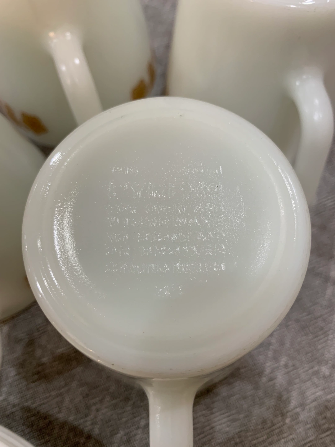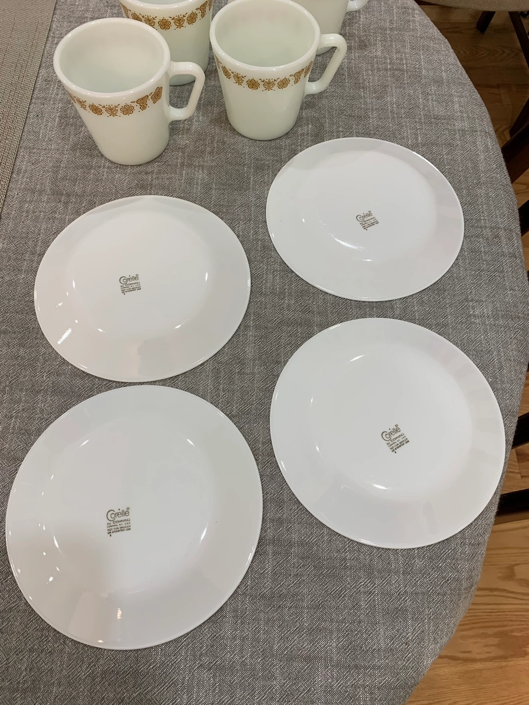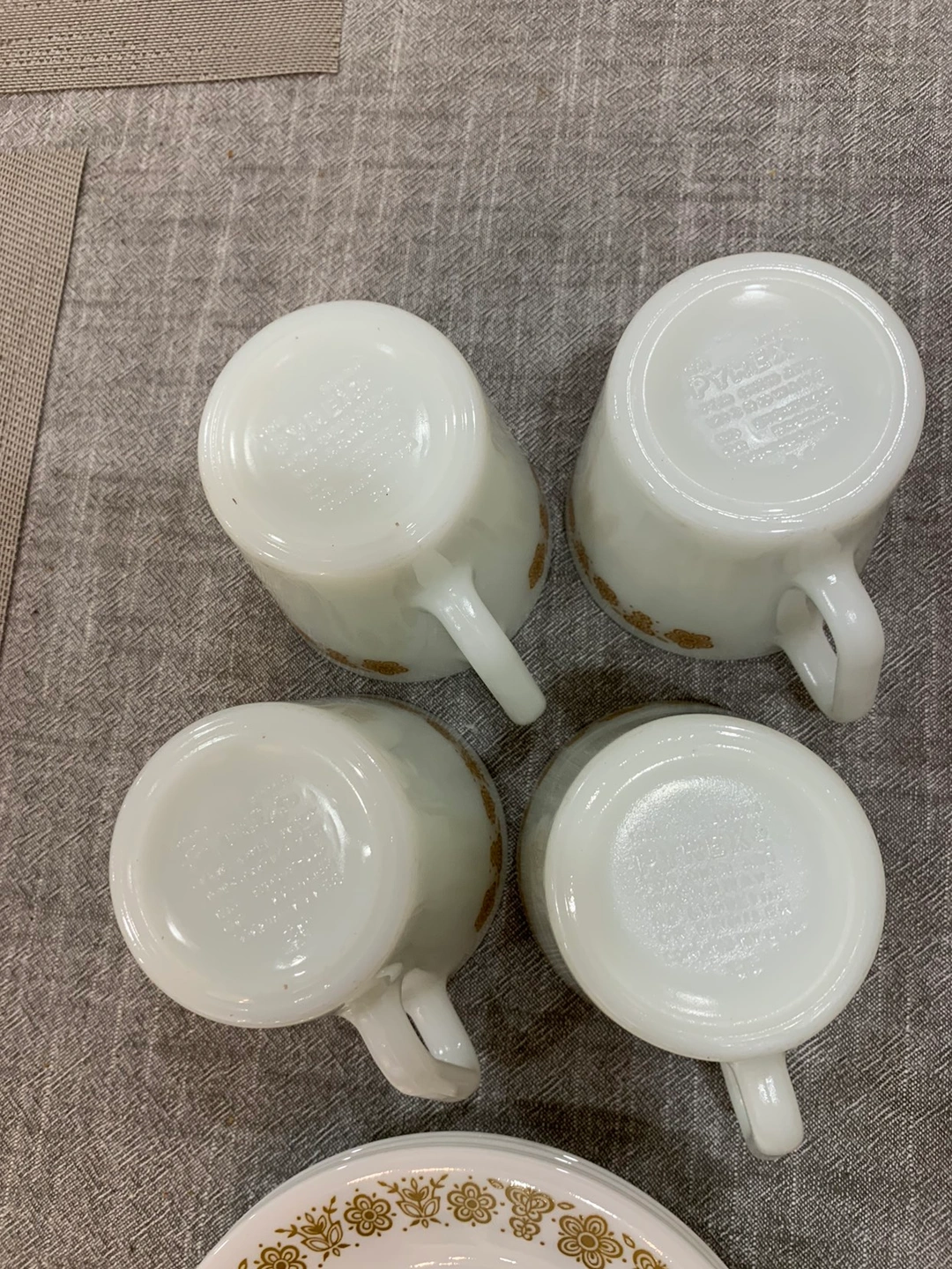 4 Pyrex Gold Butterfly Mugs & Small Plates