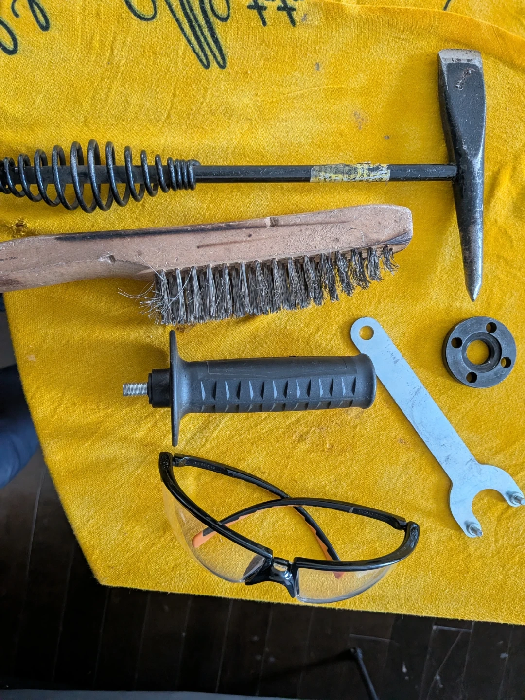 Other stuff such as welding chipping hammer, wire brush, grinder handle, key, safety glasses and a piece of Tungsten for only 10$.