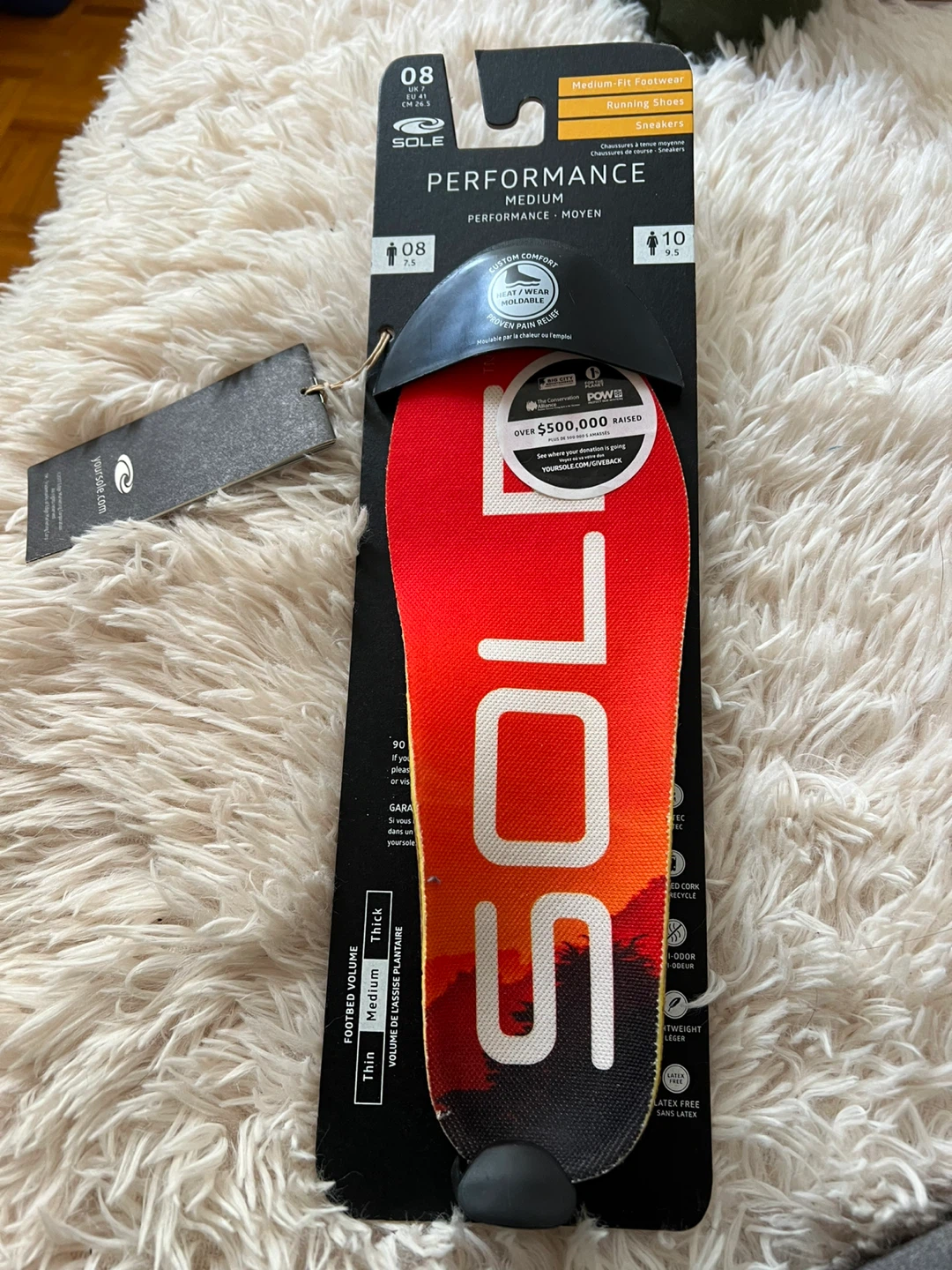 Sole Performance insoles designed for medium-fit footwear, running shoes, and sneakers. They are heat/wear moldable and offer proven pain relief. These insoles are also latex-free.