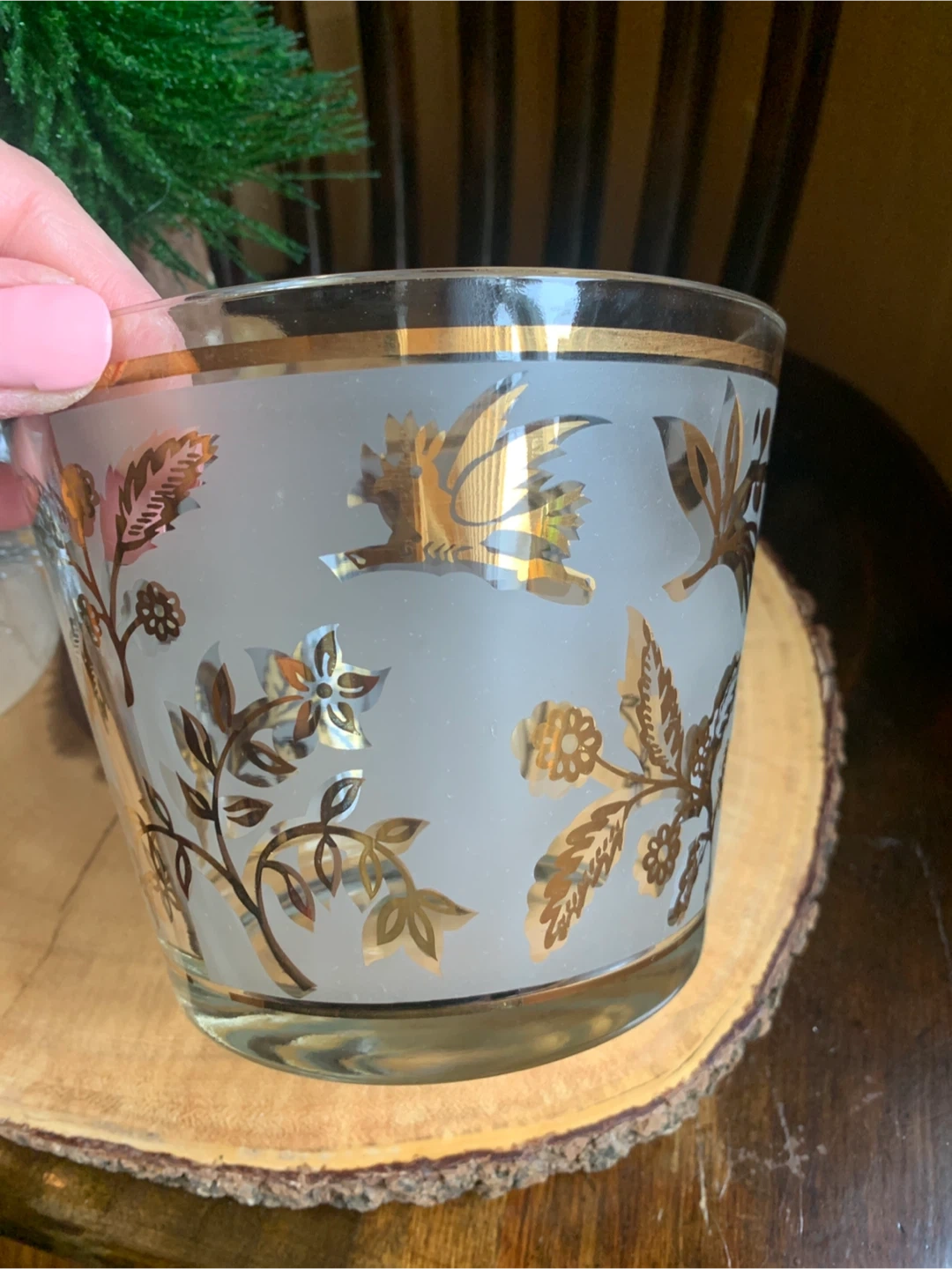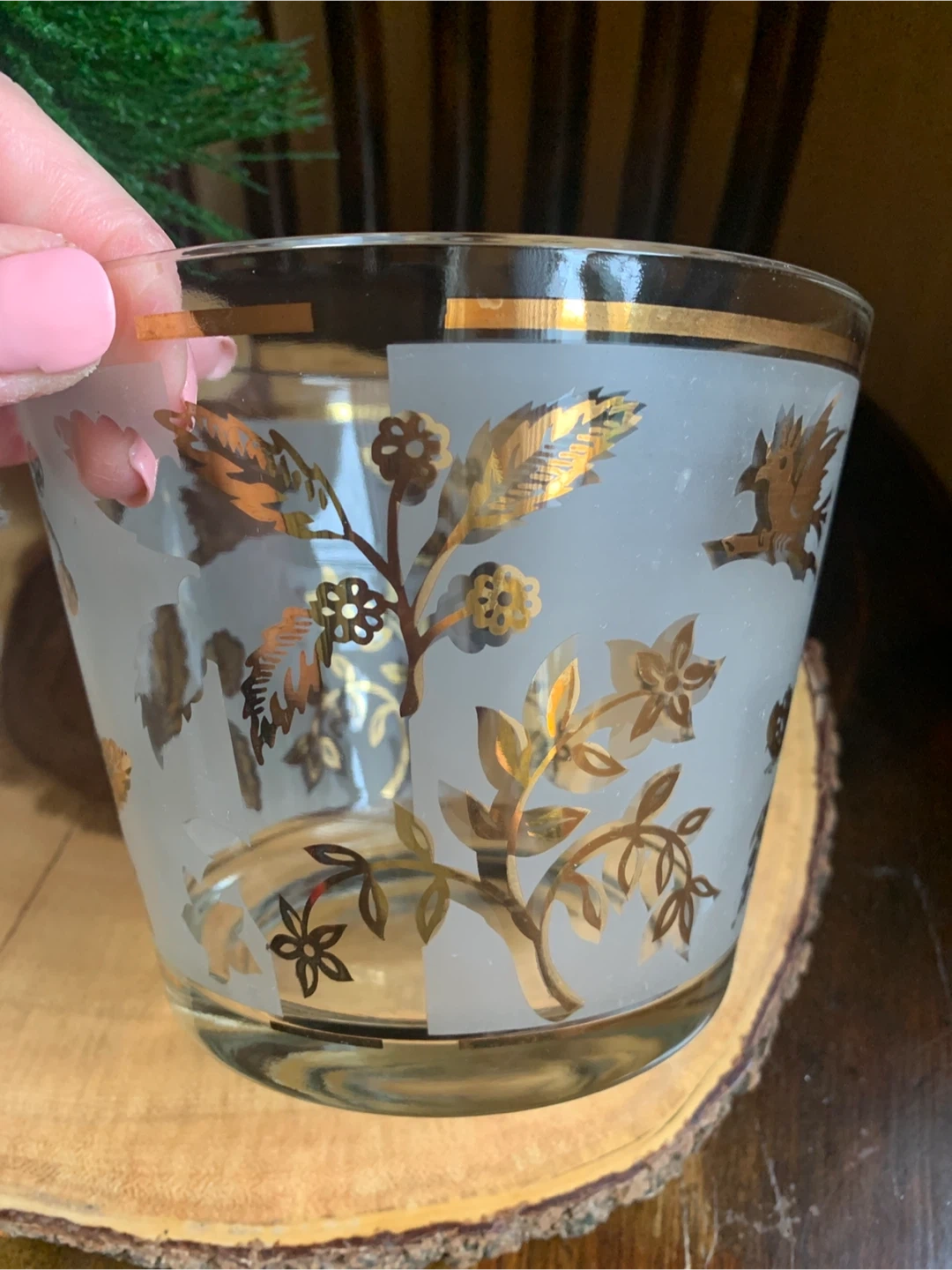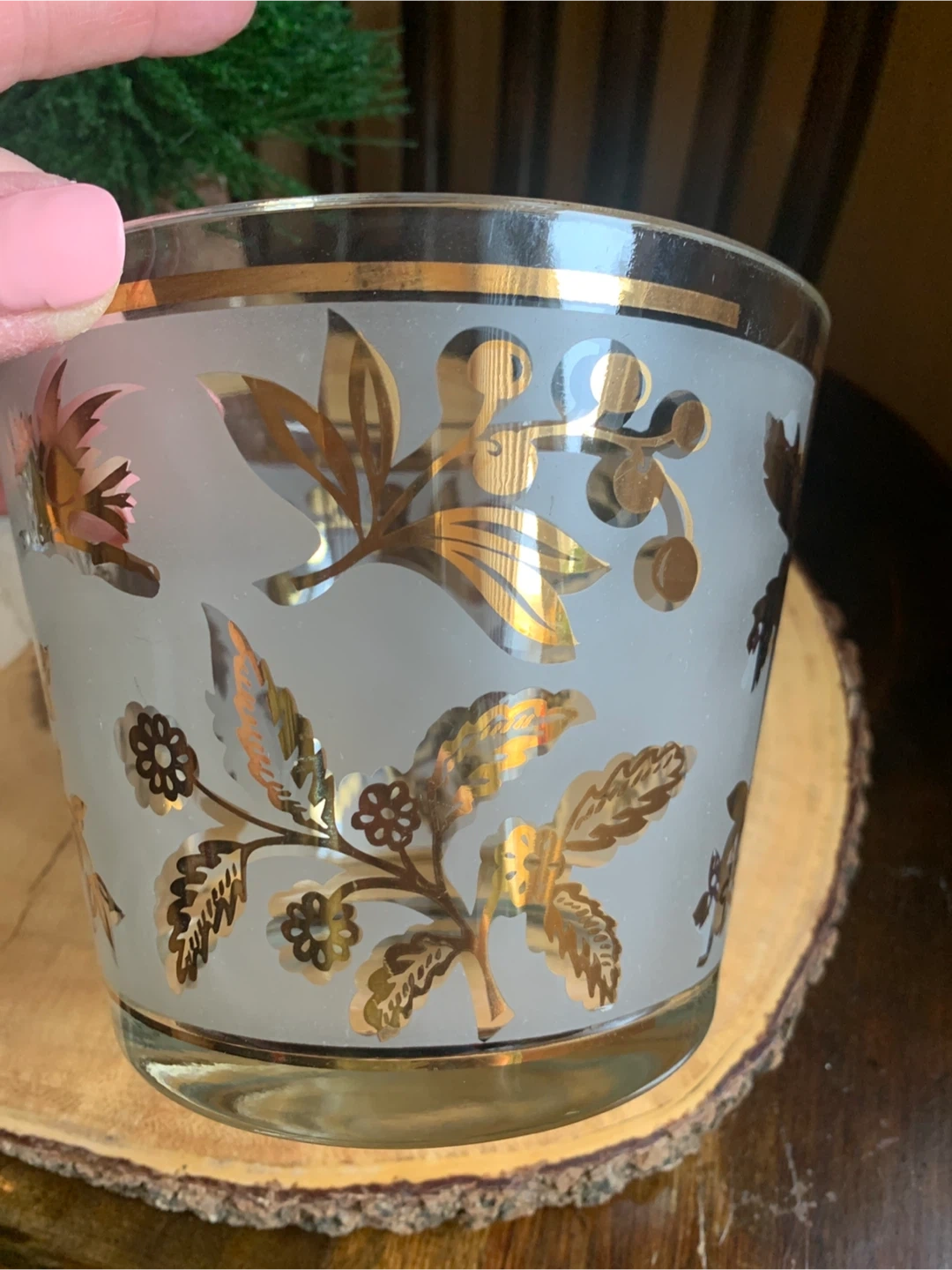 Vintage Libbey Frosted Glass/Gold Leaf Ice Bucket