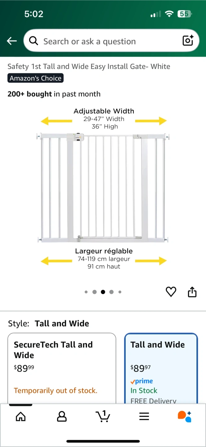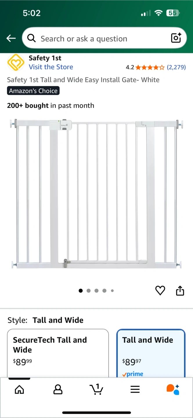 Selling a Safety 1st Tall and Wide Easy Install Gate in white! This gate is perfect for keeping your little ones safe. It's adjustable in width from 29-47 inches and stands 36 inches tall. Easy to install and provides peace of mind!