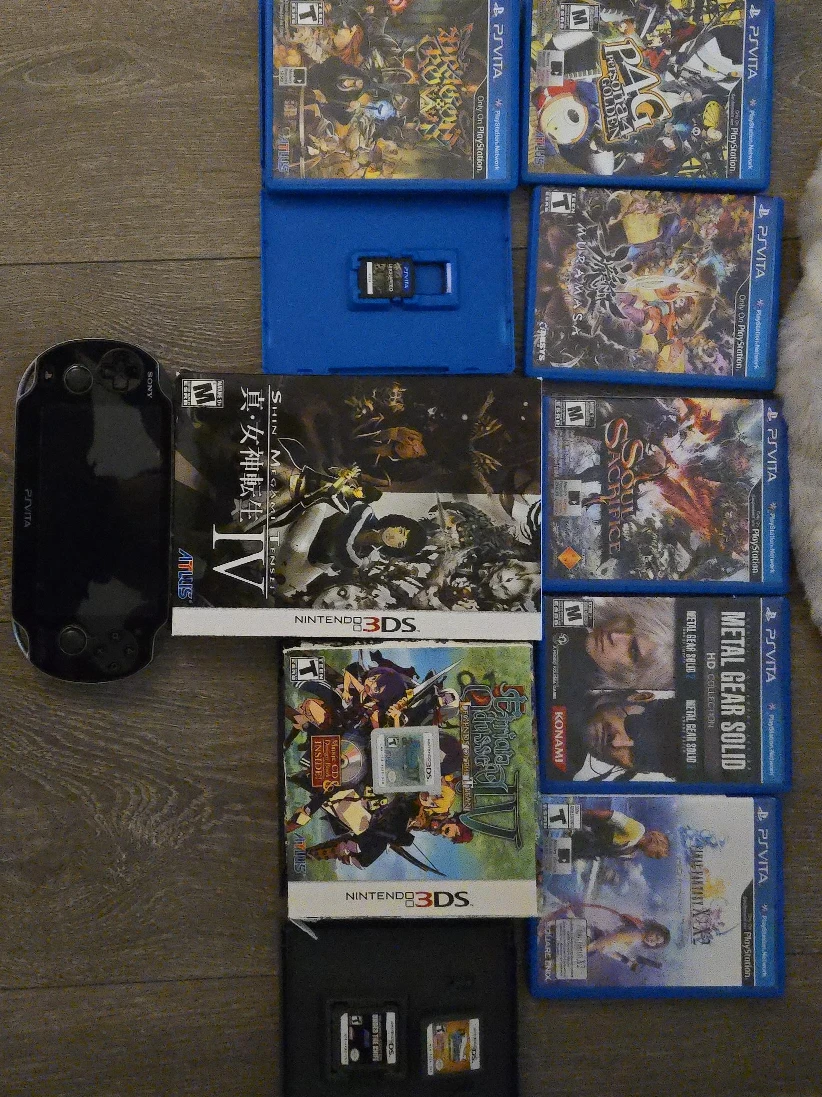 28Selling an OLED PS Vita and a bundle of games for PS Vita and Nintendo 3DS. Includes titles like Persona 4 Golden, Metal Gear Solid HD Collection, Soul Sacifice, Muramasa Rebirth, Final Fantasy 10, Dragons Crown, Uncharted Golden Abyss, Etrian Odyssey 4, Shin Megami Tensei IV, and more! Great for expanding your collection.