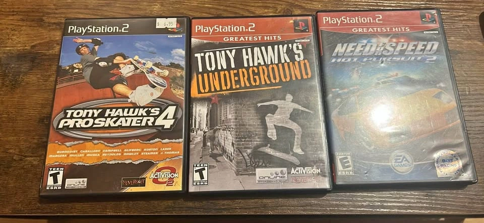 5Ps2 lot for 25$. Complete in box besides Tony hawk four which is just the box and manual. All tested and 100 percent authentic Tony hawk 4- 5$ Need for speed-10$ Tony hawk underground-15$ Let me know if you're interested!