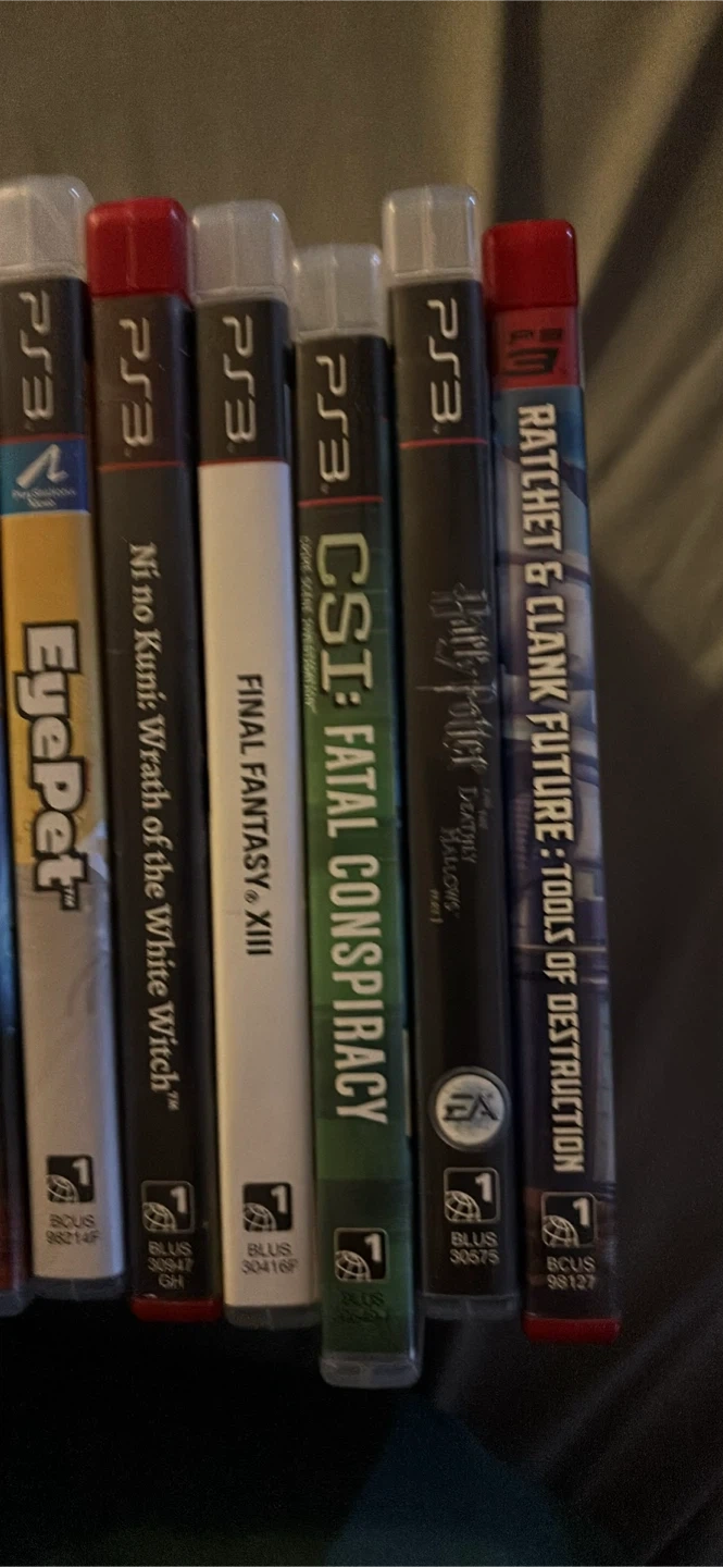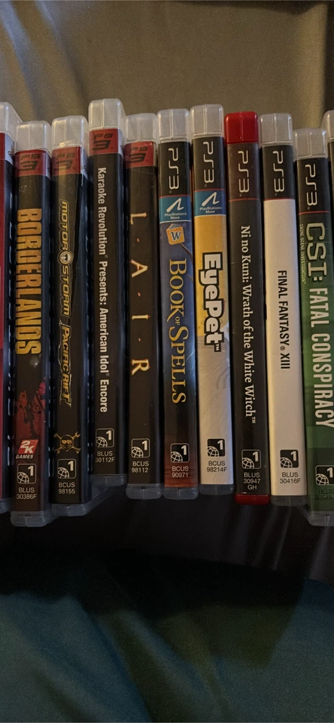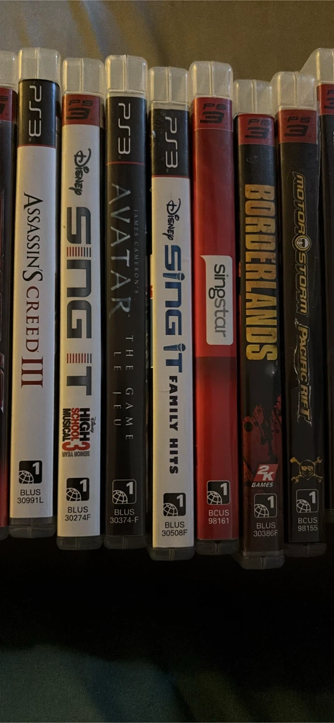 Selling a collection of PS3 games! All games 5.00 each Titles include: Assassin's Creed III - Disney Sing It: High School Musical 3 Senior Year - Avatar: The Game - Disney Sing It: Family Hits - Singstar - Borderlands - MotorStorm: Pacific Rift - SOLD - Lego Harry Potter: Years 1-4 - The Shoot - Sports Champions - Karaoke Revolution Presents: American Idol Encore - Call of Duty 4: Modern Warfare - Disney Pirates of the Caribbean: The Video Game - Tekken 6 - SOLD - Lair - SOLD - EyePet - Ni no Kuni: Wrath of the White Witch - Final Fantasy XIII - CSI: Fatal Conspiracy - Harry Potter and the Deathly Hallows Part 1 - SOLD - Ratchet & Clank Future: Tools of Destruction - SOLD