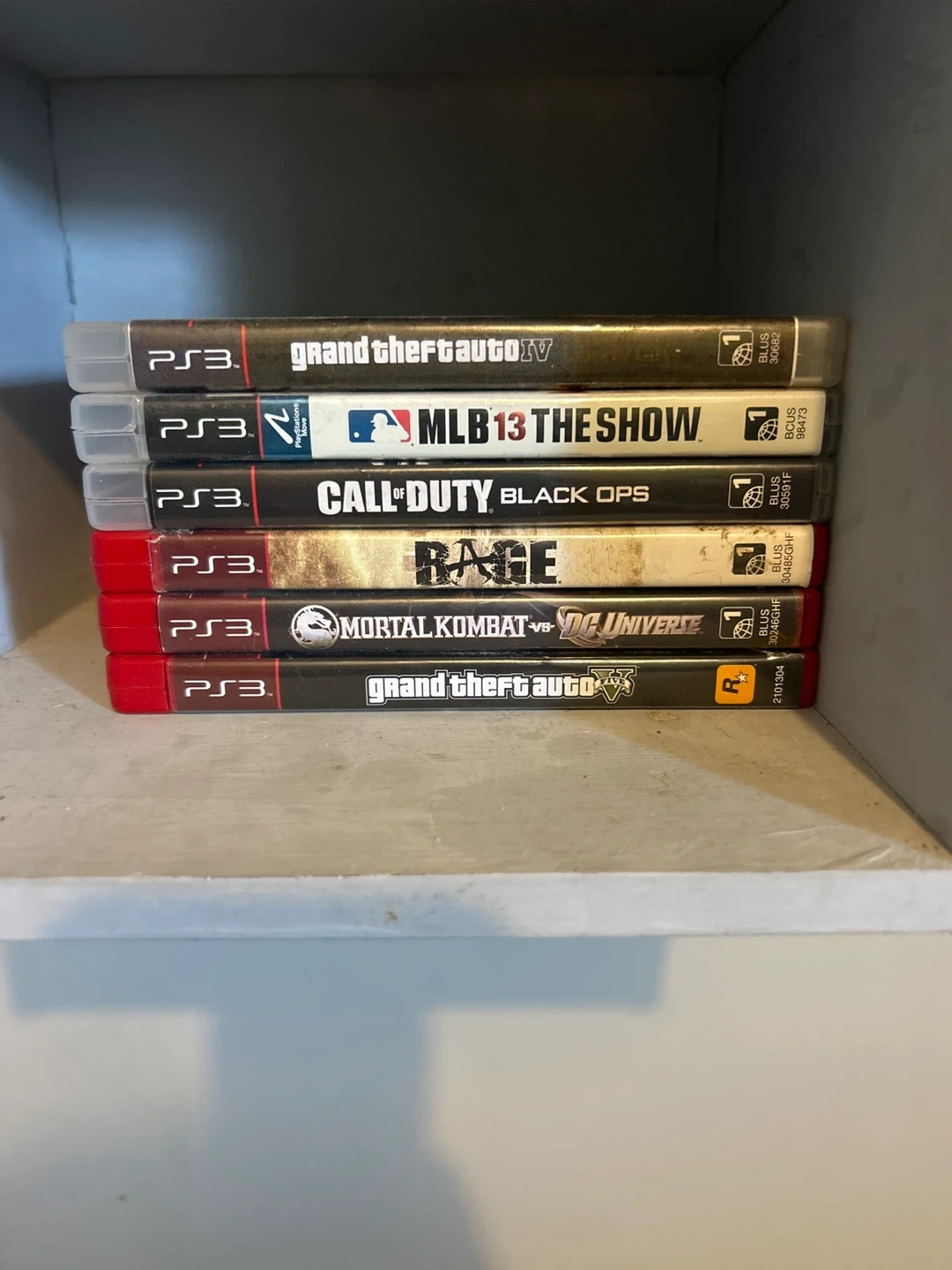 Selling a collection of PS3 games! Includes: - Grand Theft Auto IV - MLB 13 The Show - Call of Duty Black Ops - Rage - Mortal Kombat vs DC Universe - Grand Theft Auto V