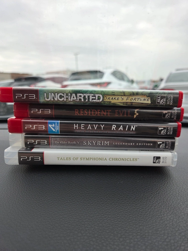 Selling a collection of PS3 games, including: - Uncharted: Drake's Fortune - Resident Evil 5 - Heavy Rain - The Elder Scrolls V: Skyrim Legendary Edition - Tales of Symphonia Chronicles All games are in good condition and ready to play! Willing to sell all or each game $4 each