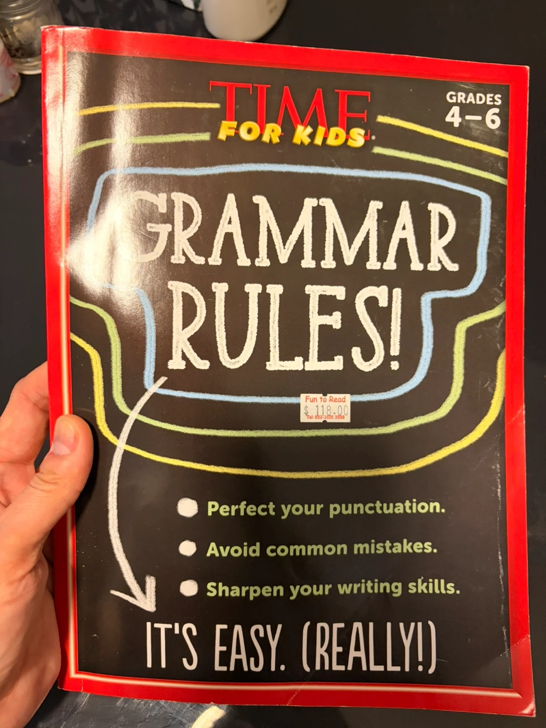 This "Time for Kids" book covers "Grammar Rules!" for grades 4-6. It helps to perfect punctuation, avoid common mistakes and sharpen writing skills. It's made for kids to learn grammar in an easy way.