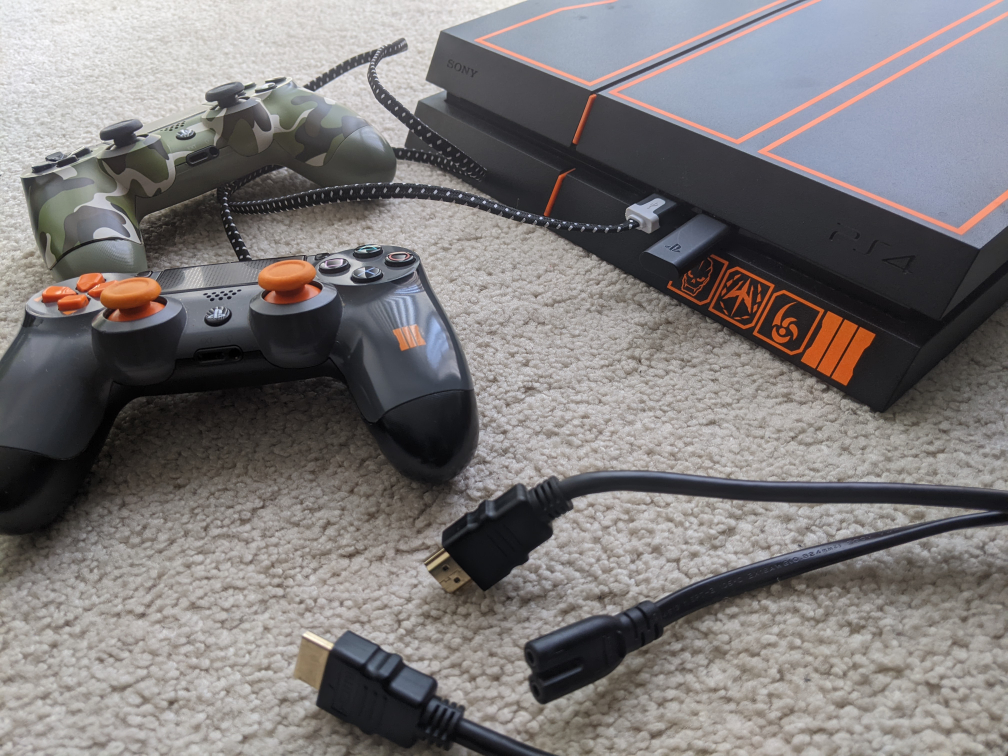 94Excellent Condition ✨ Smoke free home SONY PS4 Call Of Duty Black Ops III Edition 1TB Game storage Wireless Gold Headset USB Dongle Headset Receiver All connection cords are available Available with 2️⃣ Controllers Bonus 🍒 4️⃣ Games on the side. *The original box packaging is NOT available, Sorry!