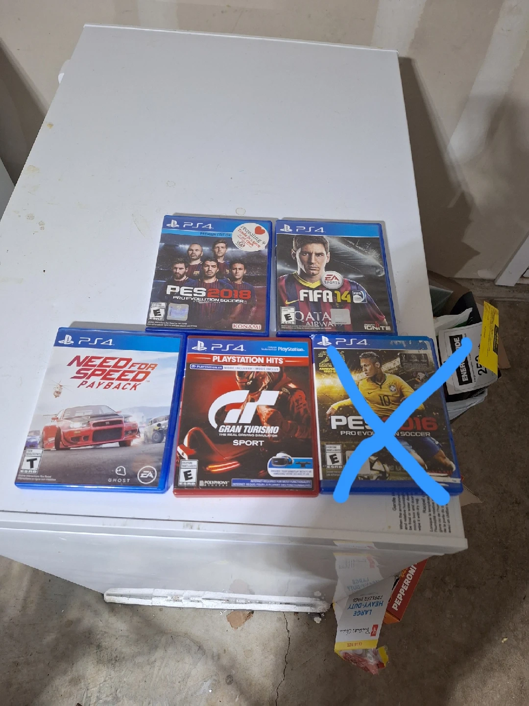 15Selling a bundle of PS4 games! Includes FIFA 14, PES 2018, Need for Speed Payback, and Gran Turismo Sport. 15$ per game 40$for all