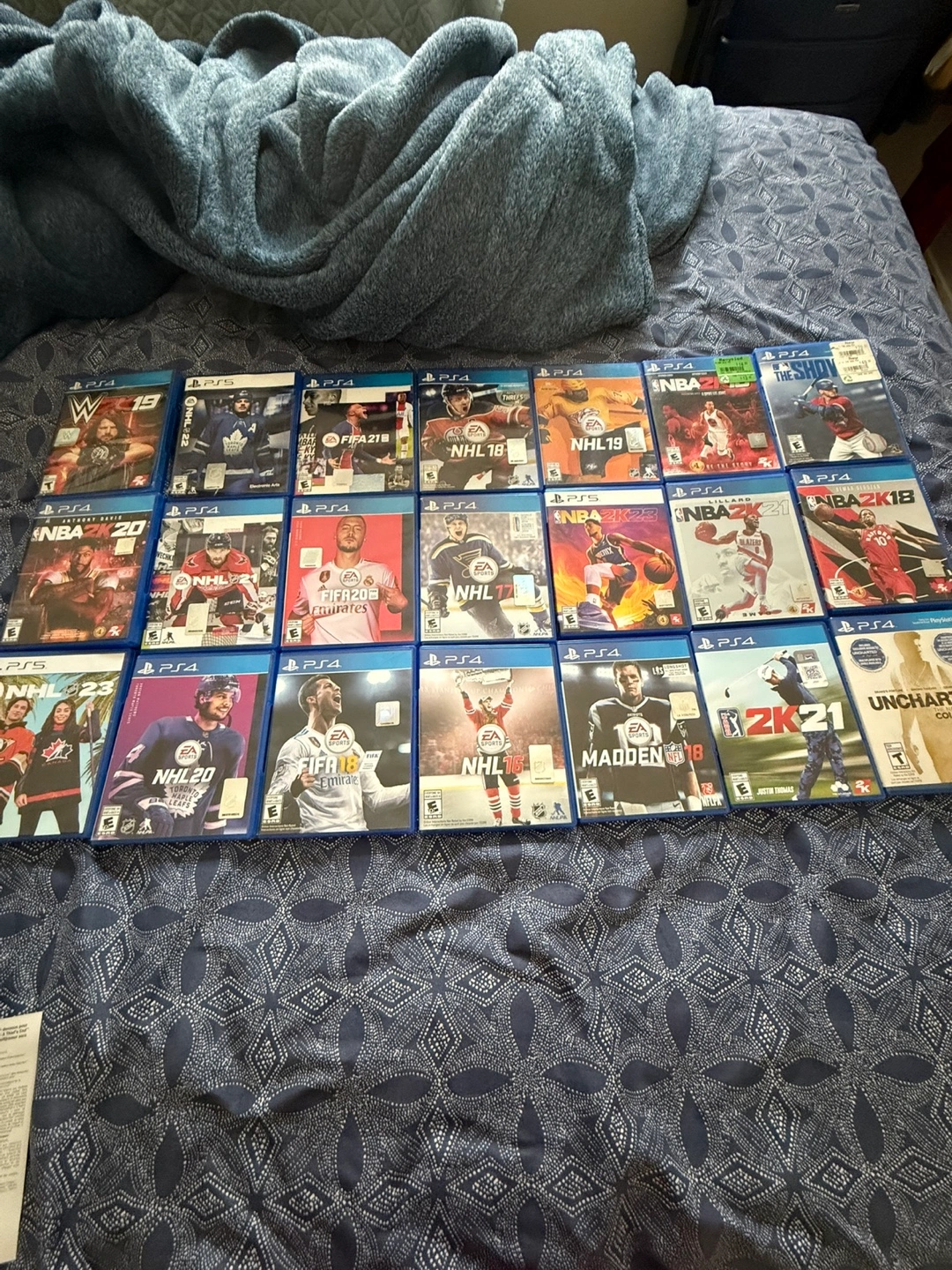 Selling a bundle of PS4 games! Includes a variety of sports titles like NHL, NBA, FIFA, Madden, and WWE. Perfect for any sports game fan looking to expand their collection $5 each or $75 for all