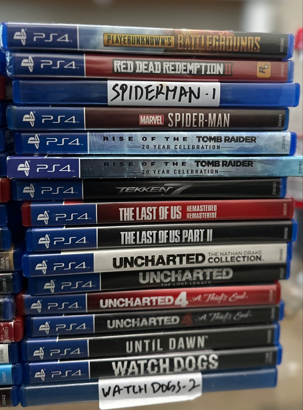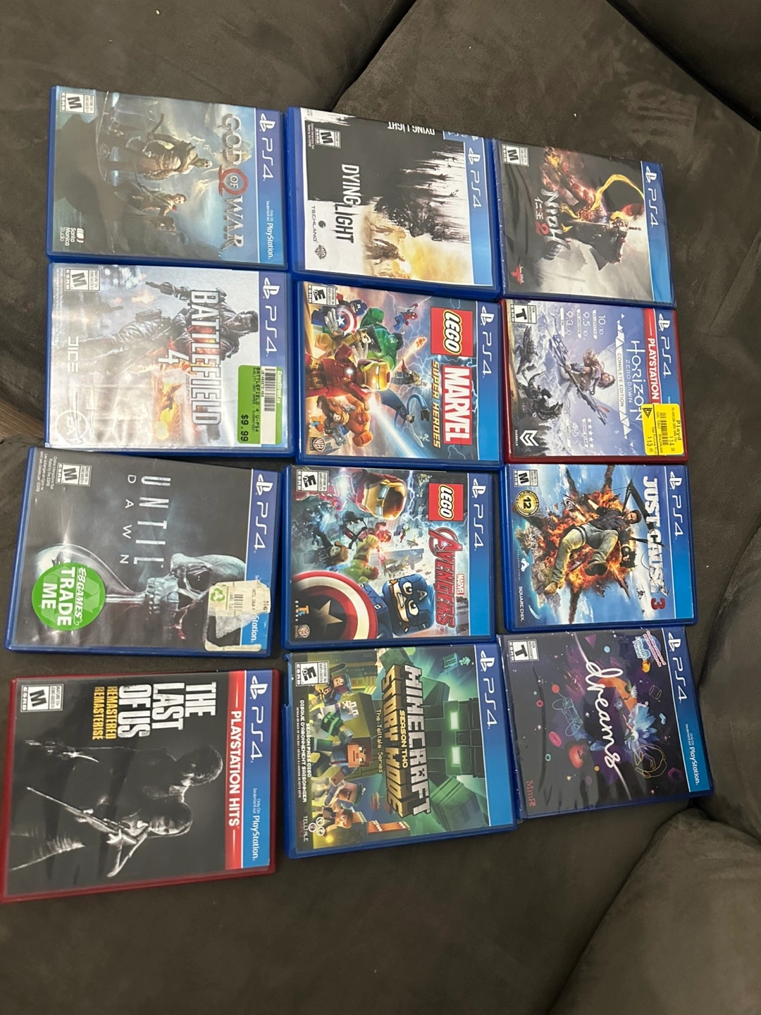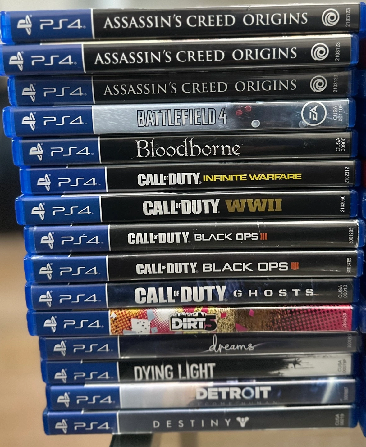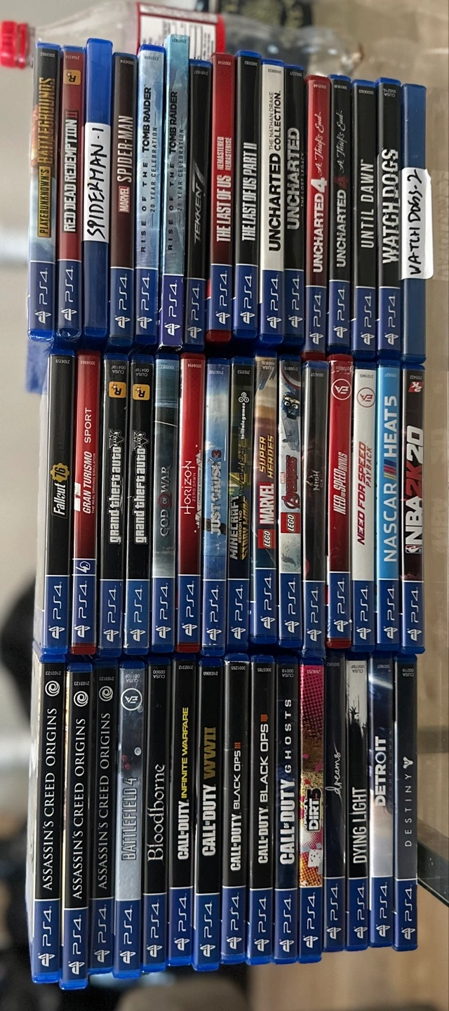 Pickup location - 3170 ridgeway drive - 9AM -5PM 25 trailwood drive - AFTER 6 PM 345 Queen St west- Delivery free for 5 games for nearby areas Buy 4 or more in order to get a bundle discount, PS4 GAMES ( also works with PS5) Assassins creed origins 20$ Battlefield 4- 10$ Blood borne-25$ Call of duty black ops 3- 20$ Call of duty black ops4 - 20$ Call of duty ghosts 20$ Call of duty WW2- 25$ Call of duty infinite warfare -25$ (Get all 5 for 85$) Concrete genie - 20$ Destiny -15$ Detroit become human - 20$ Dirt 5- 30$ Dying light -20$ Dying light - without cover -15$ Dreams - sealed - 15$ Fallout 76- 15$ God of war - 20$ GTA 5 25$ Gran turismo sport -25$ Horizon - zero dawn - without cover -10$ Horizon - zero dawn - complete edition -20$ Just cause 3- 15$ Lego -marvel superheroes -20$ Lego- avengers -20$ (Get both for 30$) Minecraft - season 2- 20$ Need for speed rivals 20$ Need for speed PAYBACK 20$ (Get both for 35$) NIOH - sealed - 20$ NBA 2K20- 15$ NASCAR -heat 5- 25$ PUBG (SEALED) 20$ RDR2- SEALED (35$) Rise of the tomb raider 20$ Rise of the tomb raider (20 year celebration collection )- 35$ Spider-Man -1 without cover - (15$) Spiderman -game of the year edition-20$ TEKKEN 7 30$ The last of Us - 2 -45$ Uncharted - collection -20$ Uncharted - lost legacy -25 Uncharted 4 20$ Watch Dogs 1 -20$ Watchdogs -2 - 20$ ( buy both for 35$)