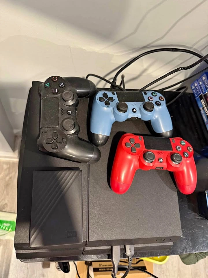 PlayStation 4 with 4TB hard drive, 3 controllers, camera, 12 games and a dvd. Pick up near heartland so you can see that everything is working perfectly prior to purchasing.