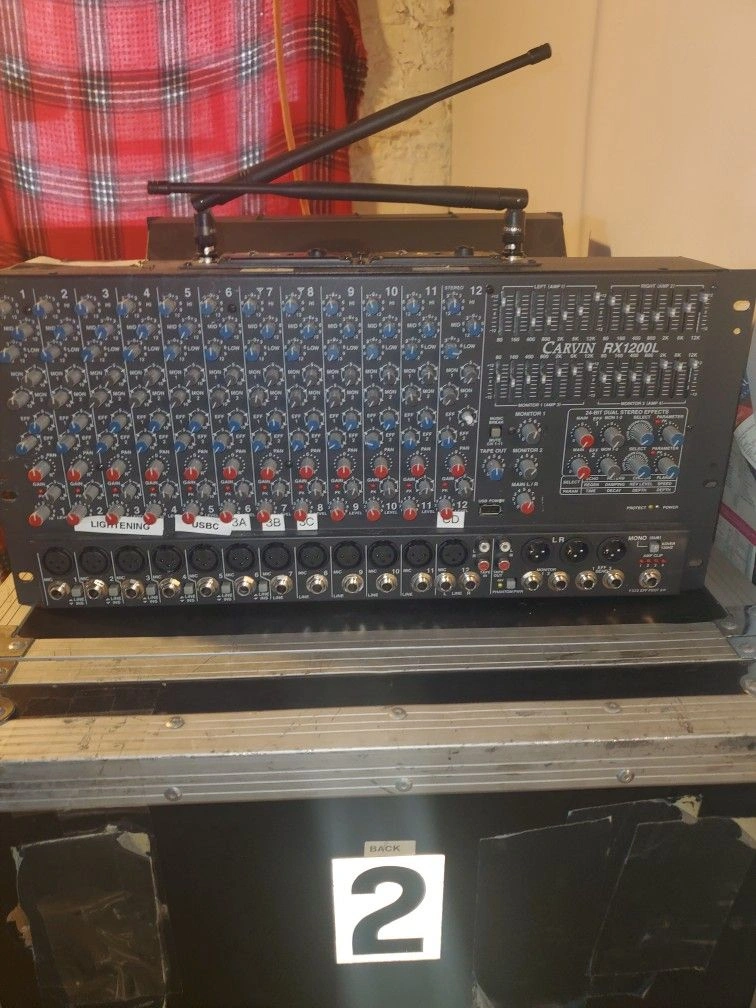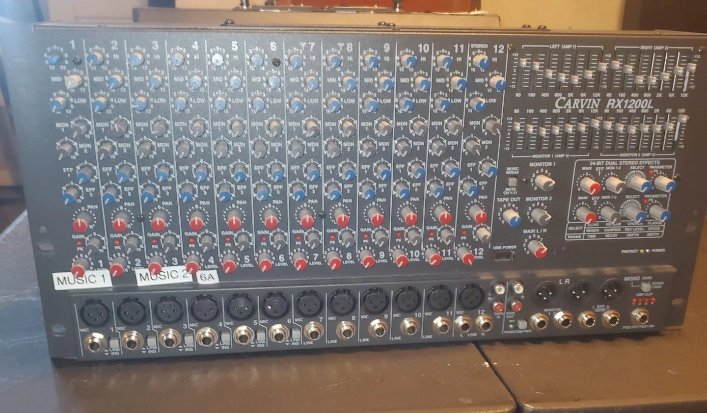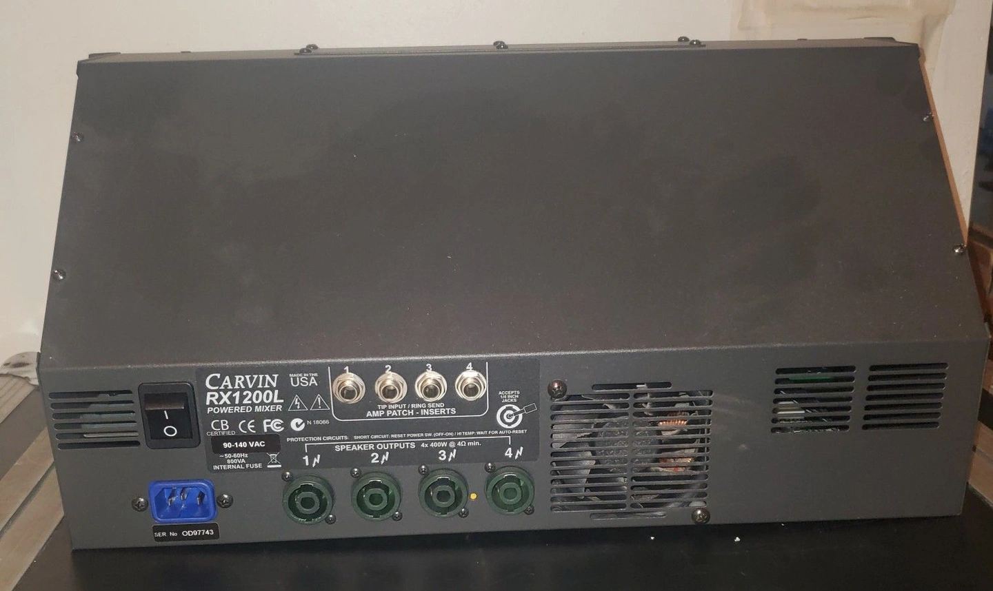 Carvin RX1200L soundboard. This thing has power, echo and reverb! Sounds fantastic with the right speakers. Perfect for any occasion that requires music. This thing has 400 watts per channel. Very loud! $190. Pick up near Armitage and Grand in Chicago. Cash or Zelle only.