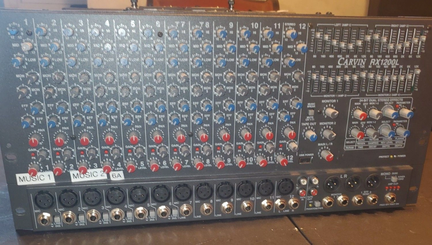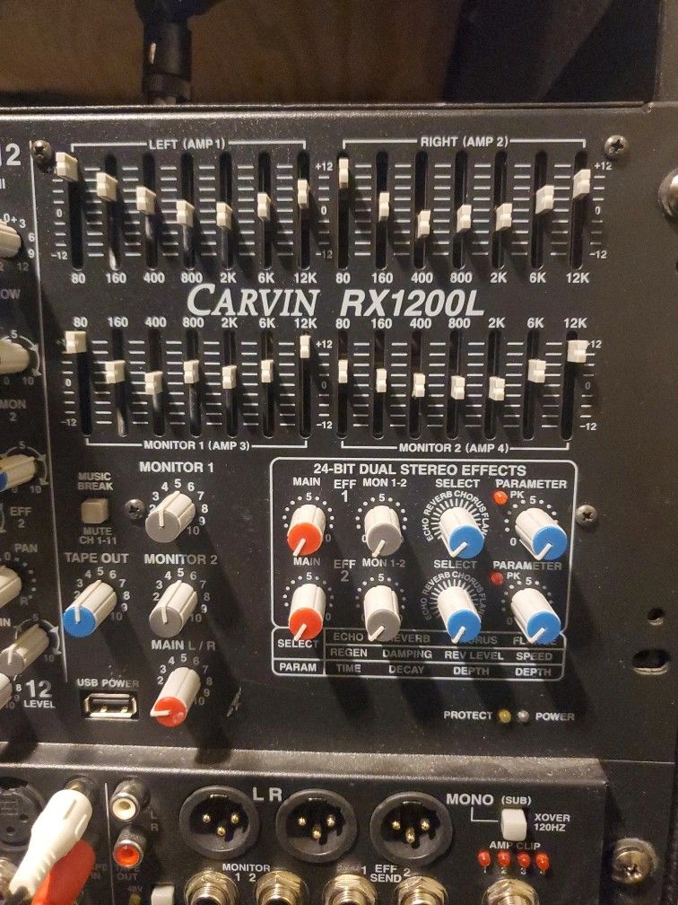 Carvin RX1200L soundboard. This thing has power, echo and reverb! Sounds fantastic with the right speakers. Perfect for any occasion that requires music. This thing has 400 watts per channel. Very loud! $190. Pick up near Armitage and Grand in Chicago. Cash or Zelle only.