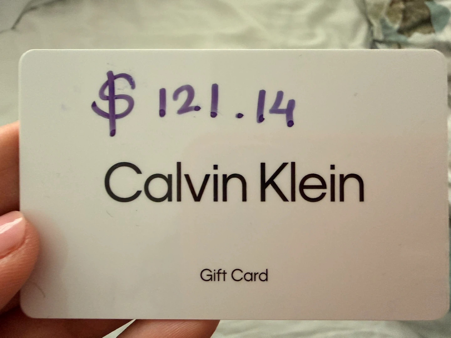 Calvin Klein gift card with $121.14 balance. This card can be used for purchases at Calvin Klein stores. Will trade for $120 e-transfer. It's a handy way to treat yourself or someone else!