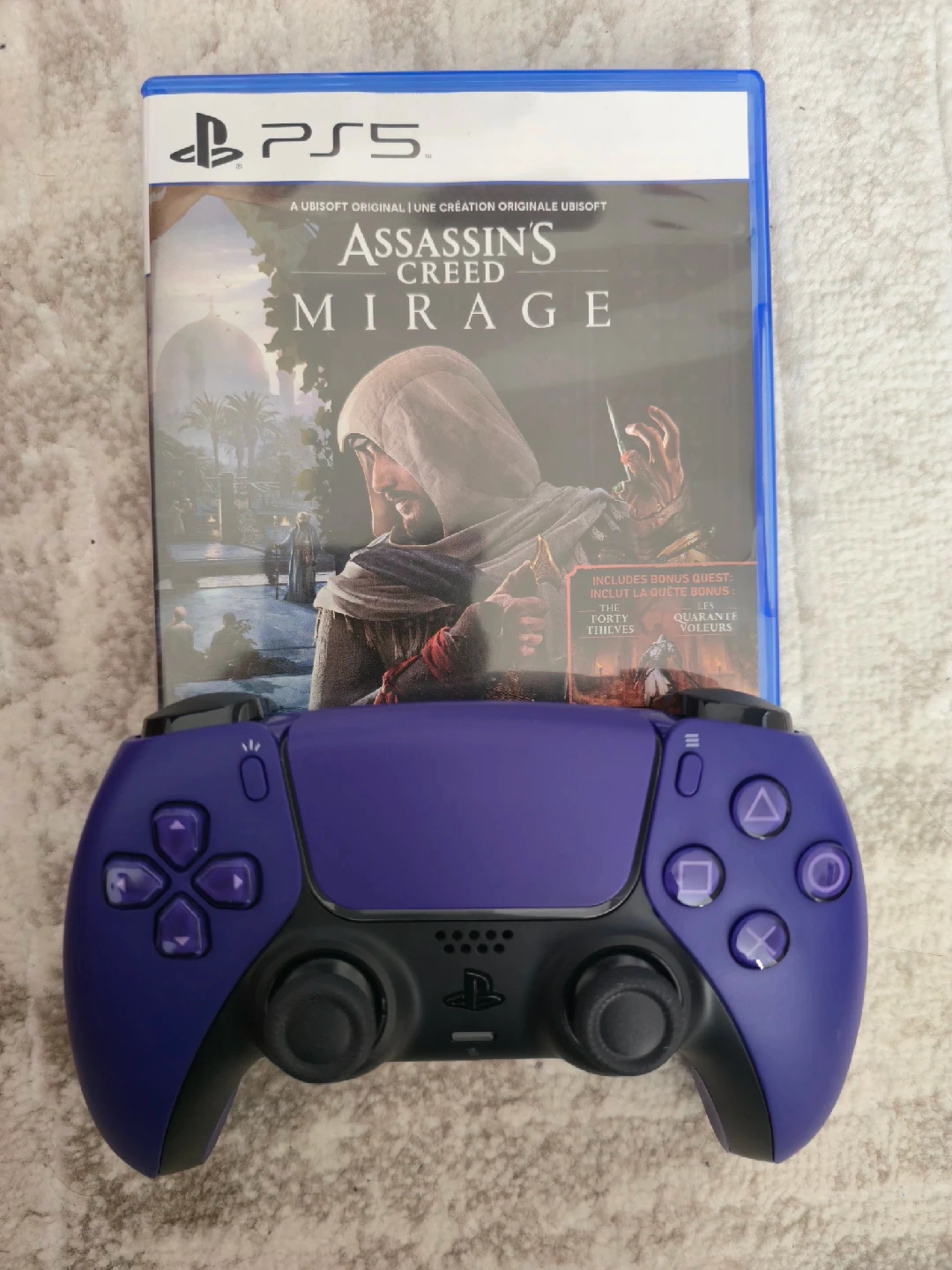 83Selling a copy of Assassin's Creed Mirage for the PS5, along with a purple PS5 controller! The game includes a bonus quest: The Forty Thieves
