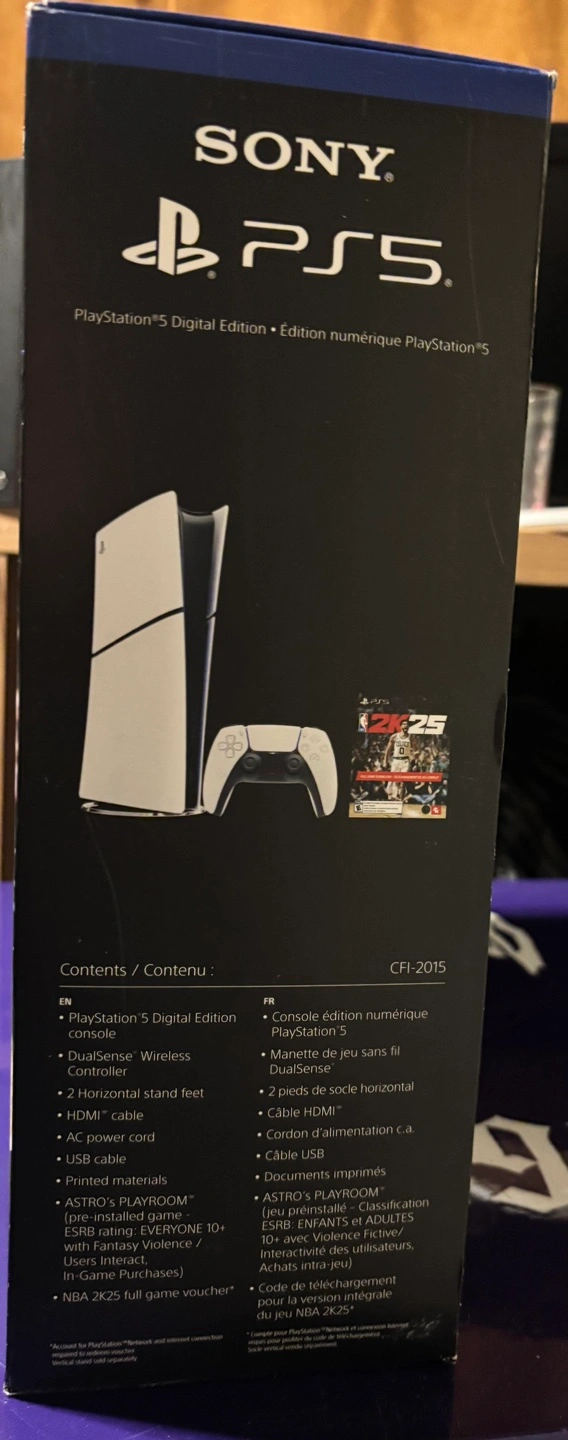 15This PS5 2k25 edition is literally brand new got as a gift just took out of box to look at it, didn’t even try it, or take anything out of packaging and decided it’s not what I want. All accessories are in original packaging. 1TB hard drive. Looking for trades not anything I’m specifically looking for so send offers. Or $480 FIRM no lower , which is a great deal considering it’s $730 in store. Located in Irricana (20 min east of airdrie) but can deliver.