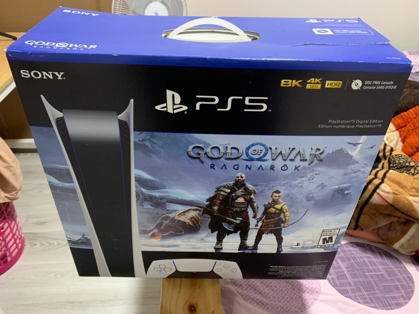5PlayStation 5 Digital Edition Console Includes one DualSense controller and headset . Console and controller are in new condition.