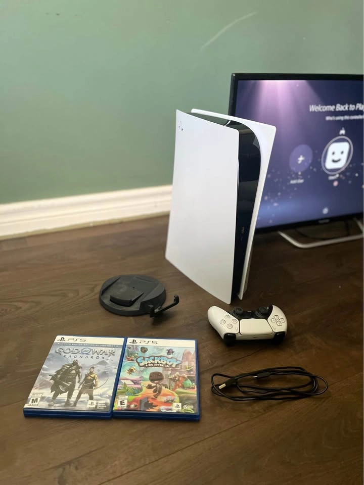 Selling my PS5 Disc Edition (825GB) with: ✅ 1x DualSense controller ✅ Power & HDMI cables ✅ 2 PS5 games: God of War Ragnarok + Sackboy: A Big Adventure 🛠️ Factory reset & tested—ready to play. Clean condition, no issues.