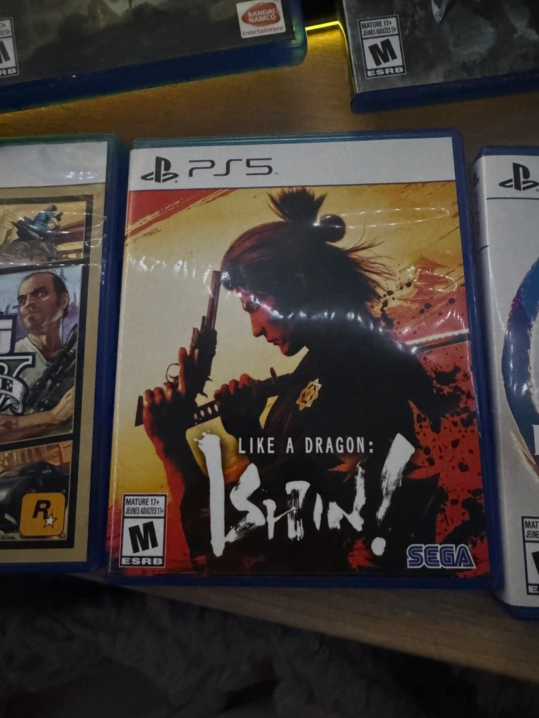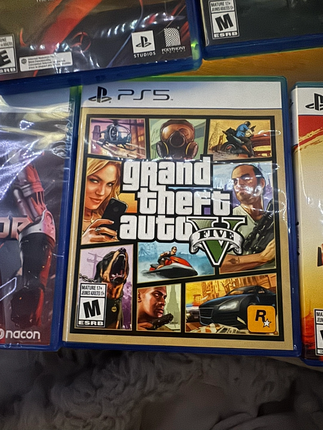 866 PlayStation 5: Mortal Kombat, Elden Ring, Like a Dragon: Ishin!, Assassin's Creed Valhalla, and Pre-owned, good condition. Rated M for Mature except Gran Turismo 7 (Rated E). Robocop rogue city (unopened) GTA 5