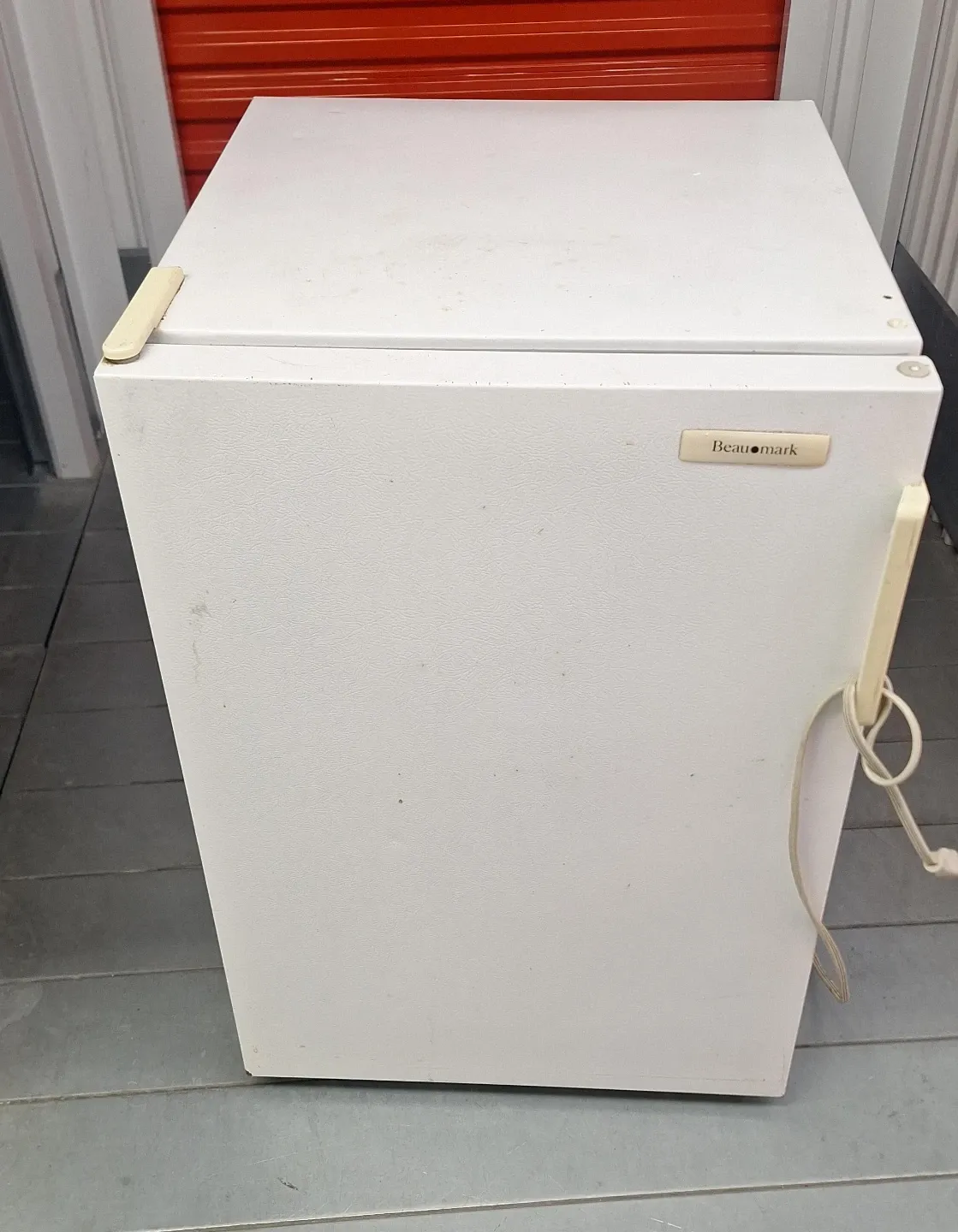 Selling a Beau-mark compact refrigerator. It's white and in used condition. Perfect for a small space or as a secondary fridge! For resturants or store. Working perfectly fine.
