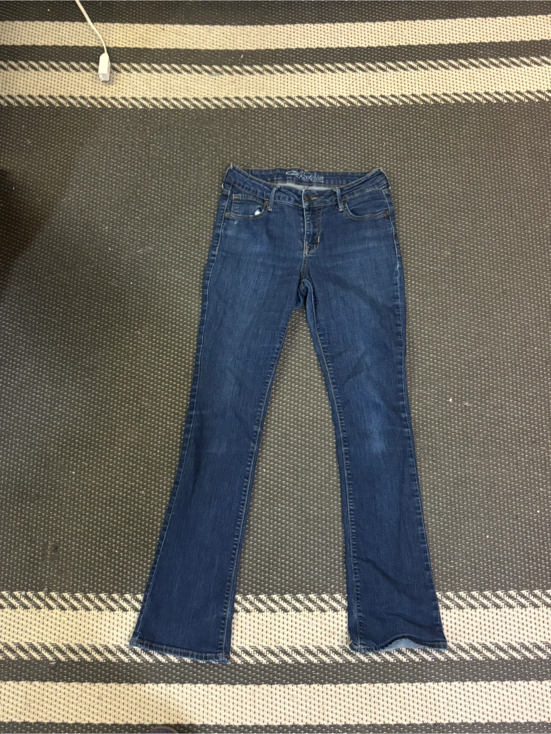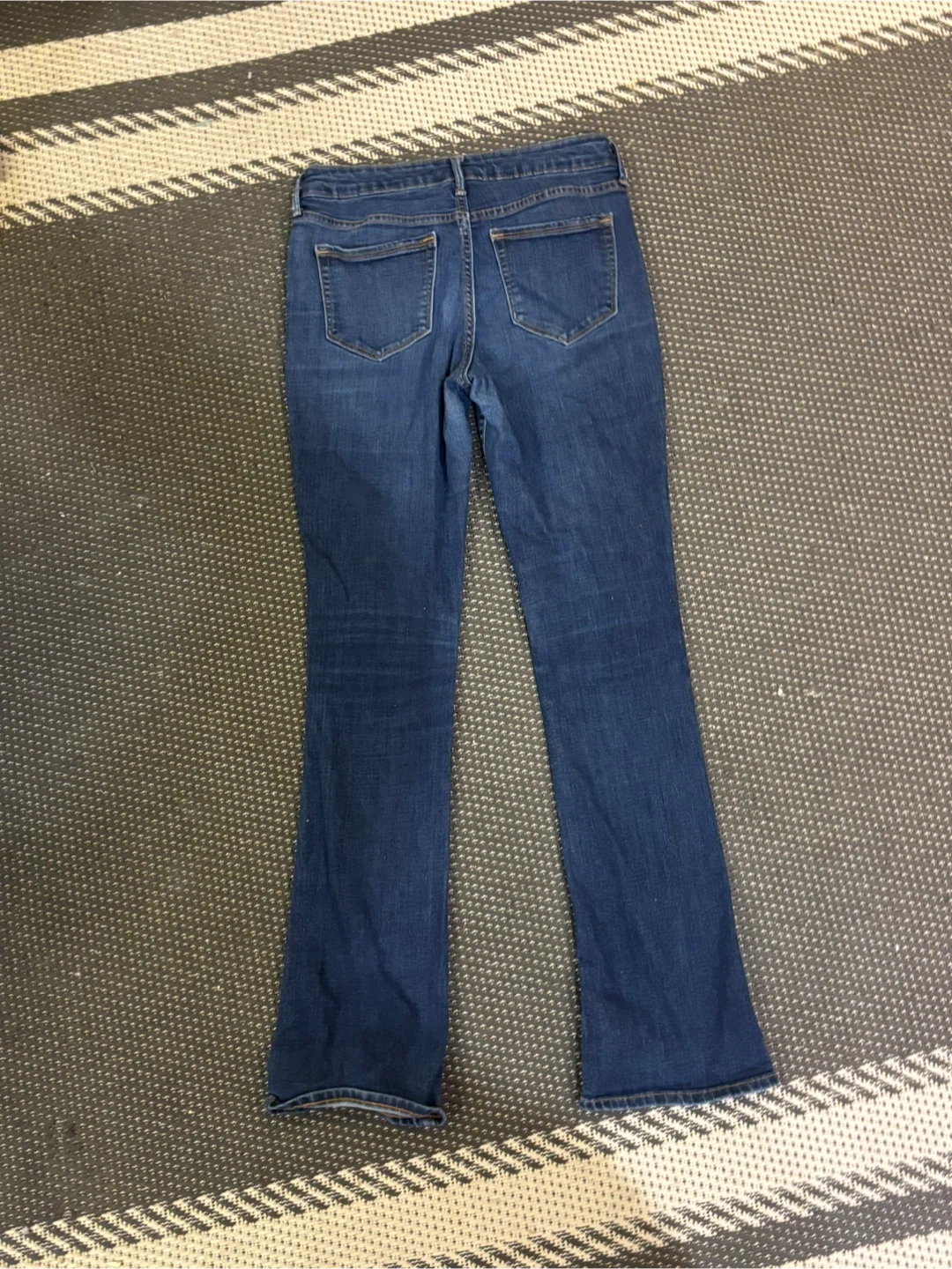 There are 2 different jeans here, the first 2 photos are of the old navy rockstar style jeans they are a size 6. The second pair are carhartt original fit jeans they are a size 6 as well.