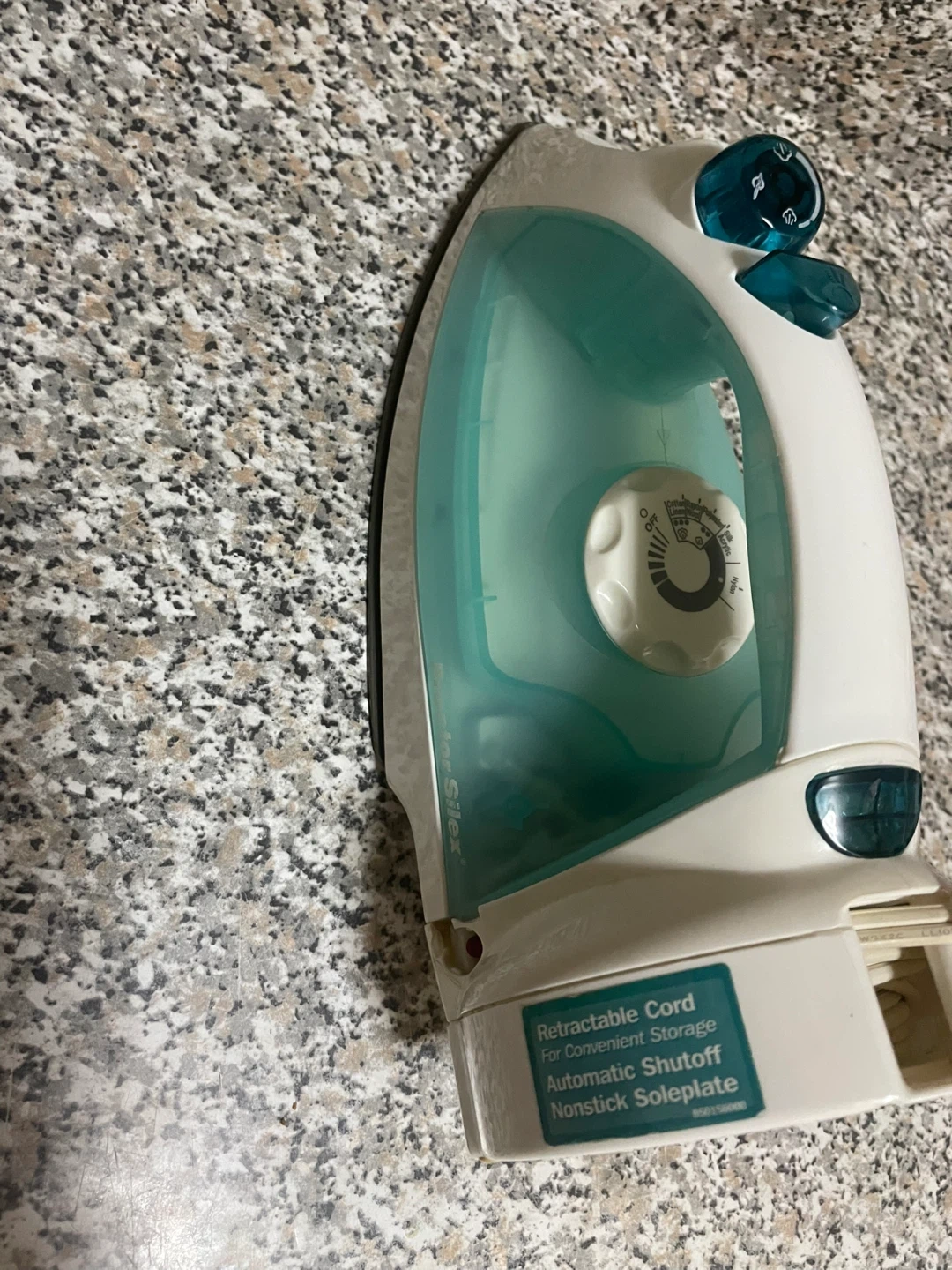 Proctor Silex iron with a nonstick soleplate and automatic shutoff! It features a retractable cord for convenient storage. Great for quick touch-ups or full ironing tasks.