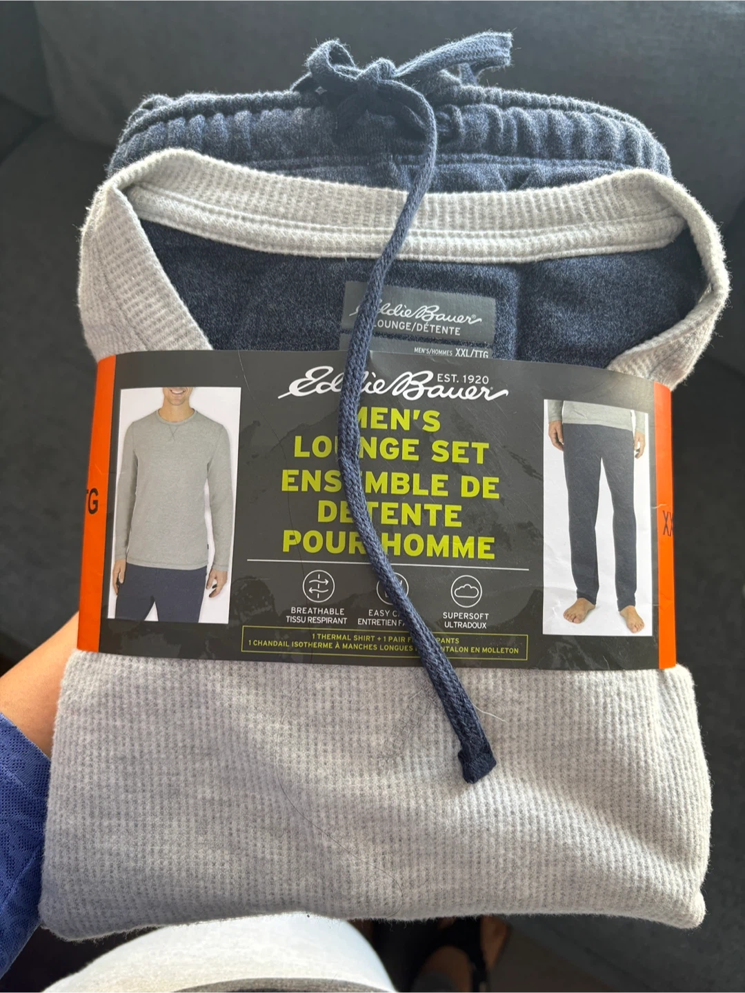 Selling a brand new Eddie Bauer Men's Lounge Set in size XXL. It's a super soft and breathable set, perfect for lounging around the house! The set includes a thermal shirt and matching pants. Easy care and ultrasoft, this set is sure to keep you comfortable