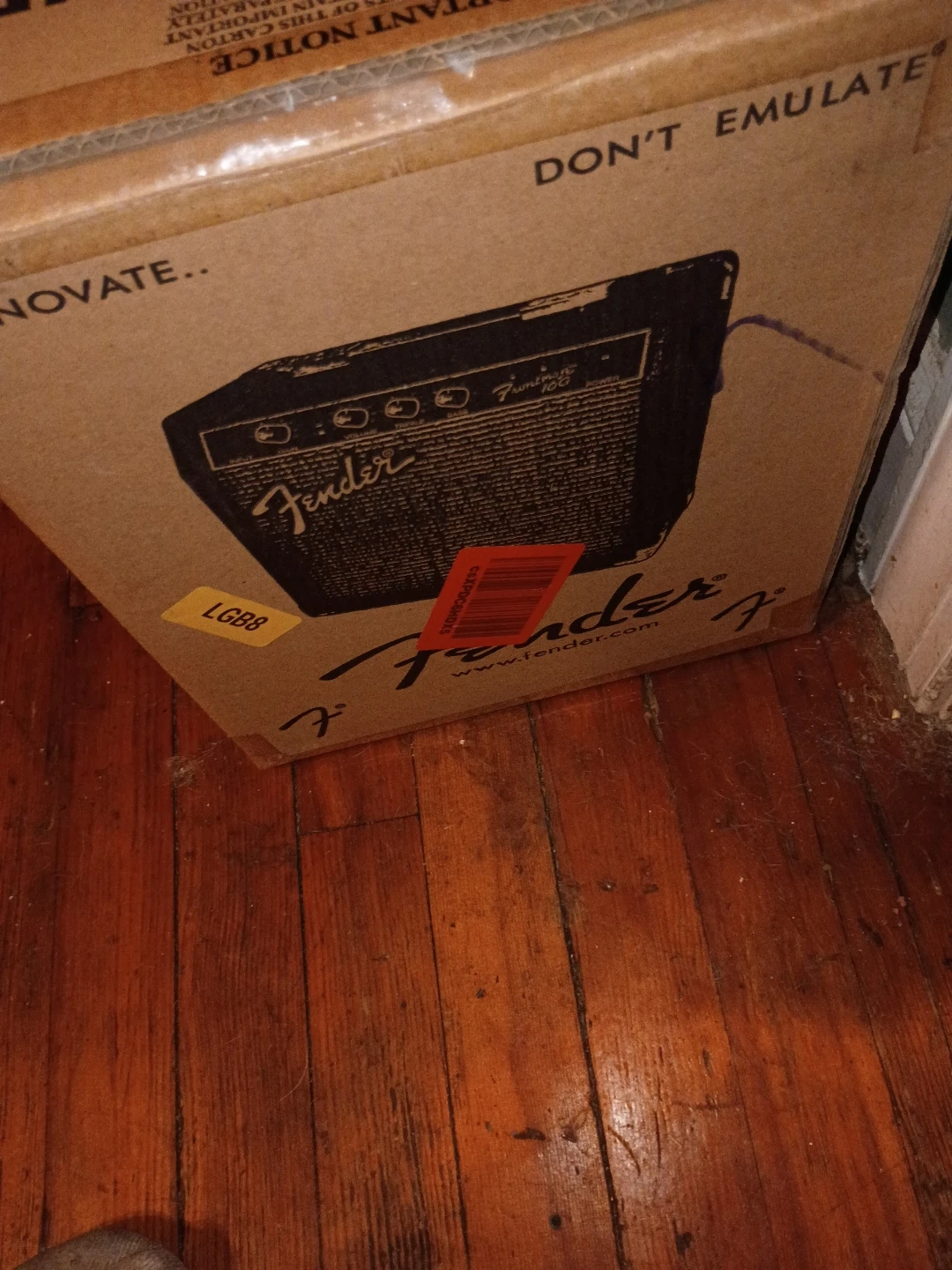 This is a Fender Frontman 10G guitar amplifier. It features a 10-watt output and a 6" speaker. The amp has two channels, gain and volume controls, and a 3-band EQ.