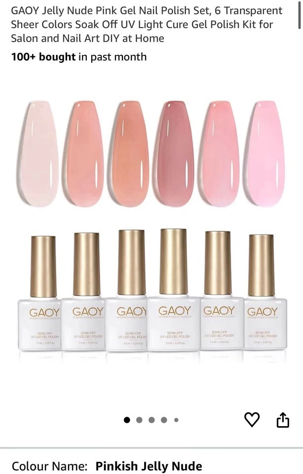 New GAOY Jelly Nude Pink Gel Nail Polish Set, 6 Transparent Sheer Colors Soak Off UV Light Cure Gel Polish Kit for Salon and Nail Art DIY at Home. Retails for $19.99 on Amazon. Asking $10. X-posted. Pick up near Coxwell and Danforth.