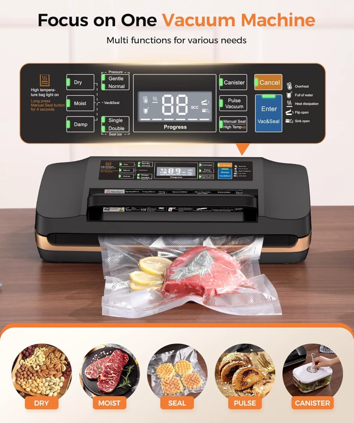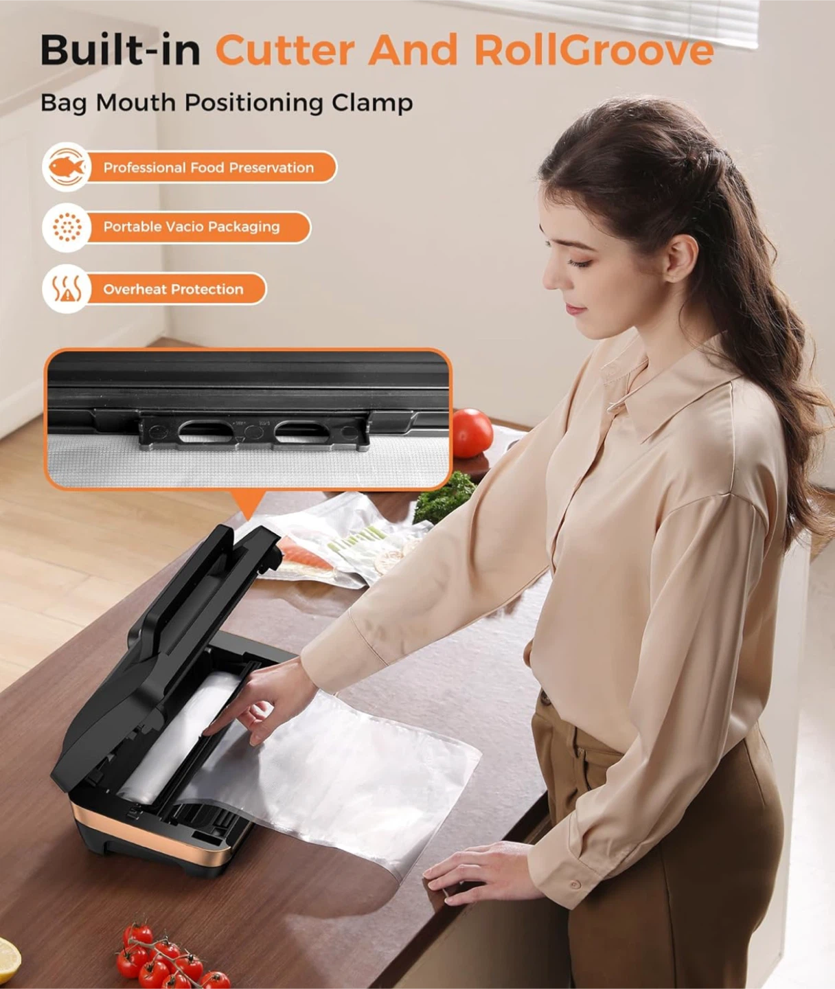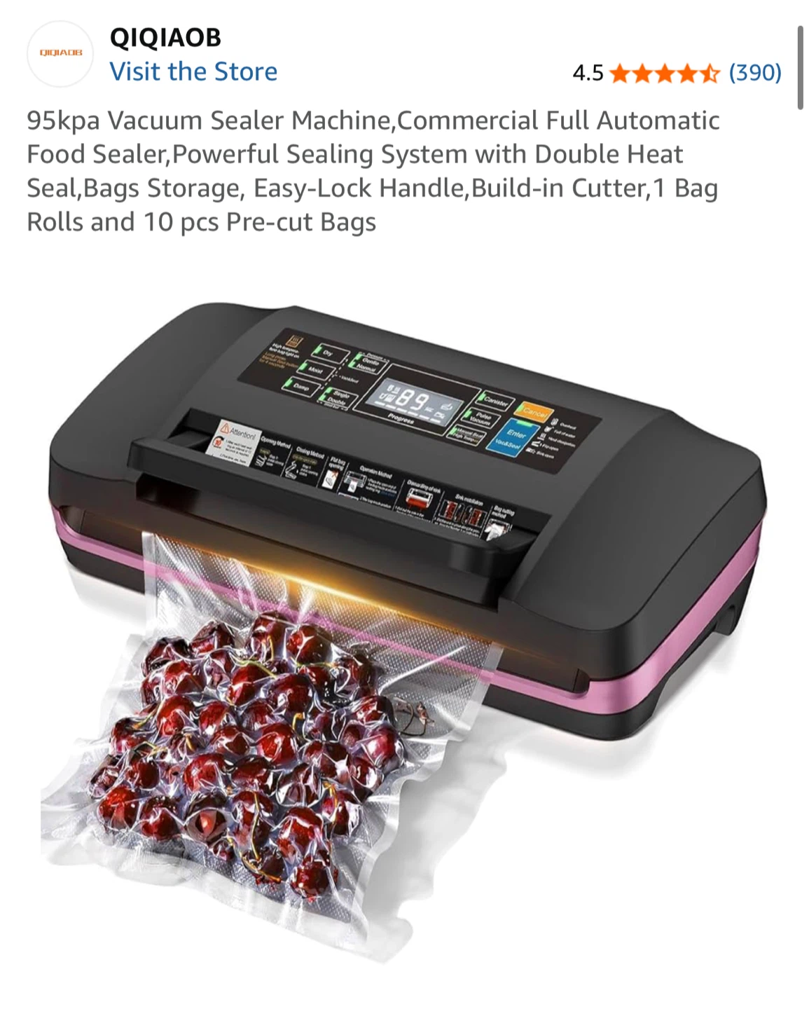 Looking to keep your food fresh longer? This QIQIAOB Vacuum Sealer Machine is just the ticket! It's a commercial-grade, fully automatic food sealer with a powerful sealing system and double heat seal. It also has built-in bag storage, an easy-lock handle, and a built-in cutter. Comes with 1 bag roll and 10 pre-cut bags