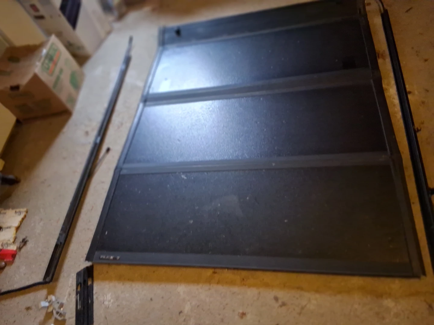 This is a FLEX tonneau cover for a pickup truck. It appears to be a tri-fold design. All mounting hardware is included. It's made of a durable, textured material.