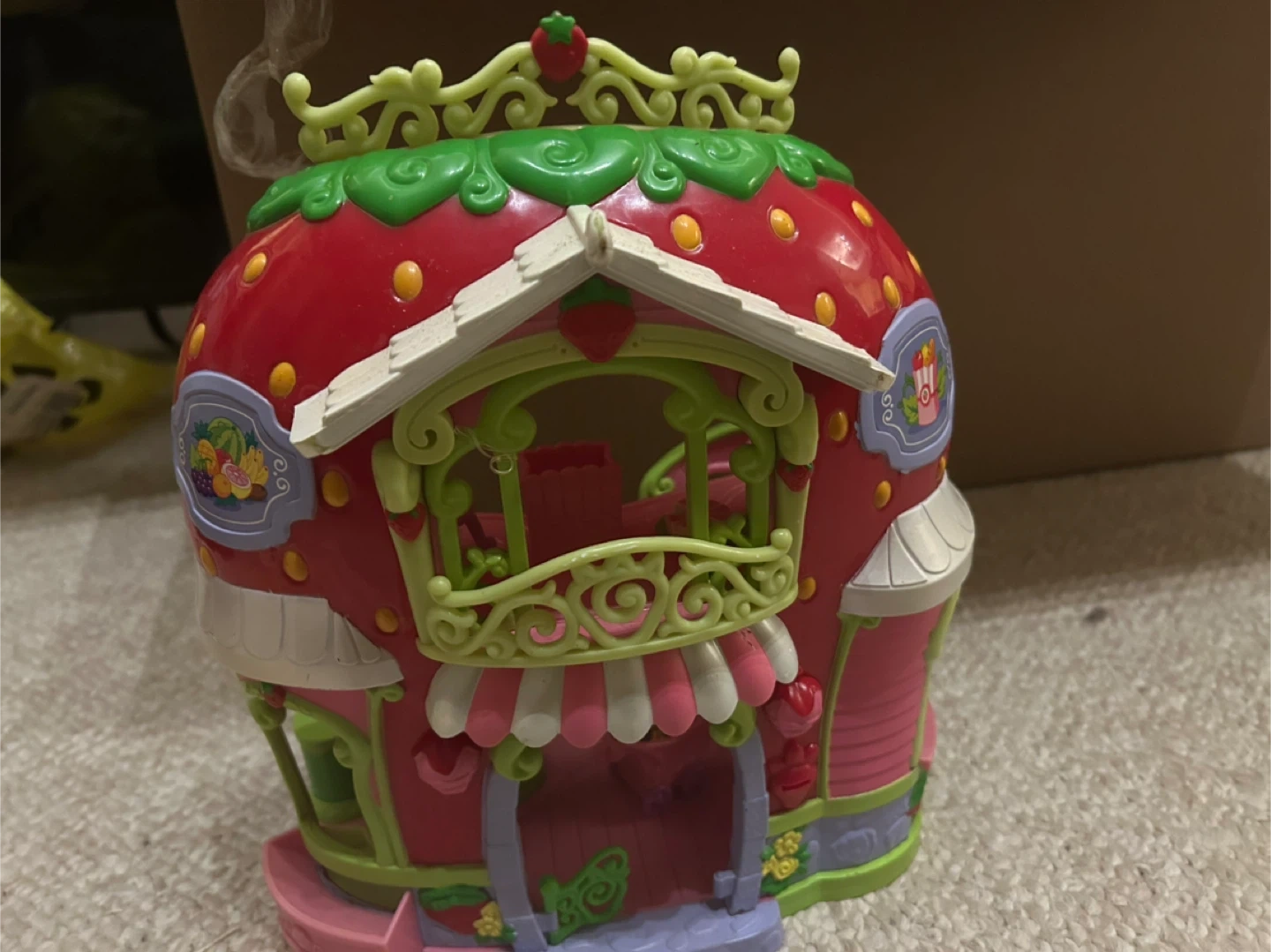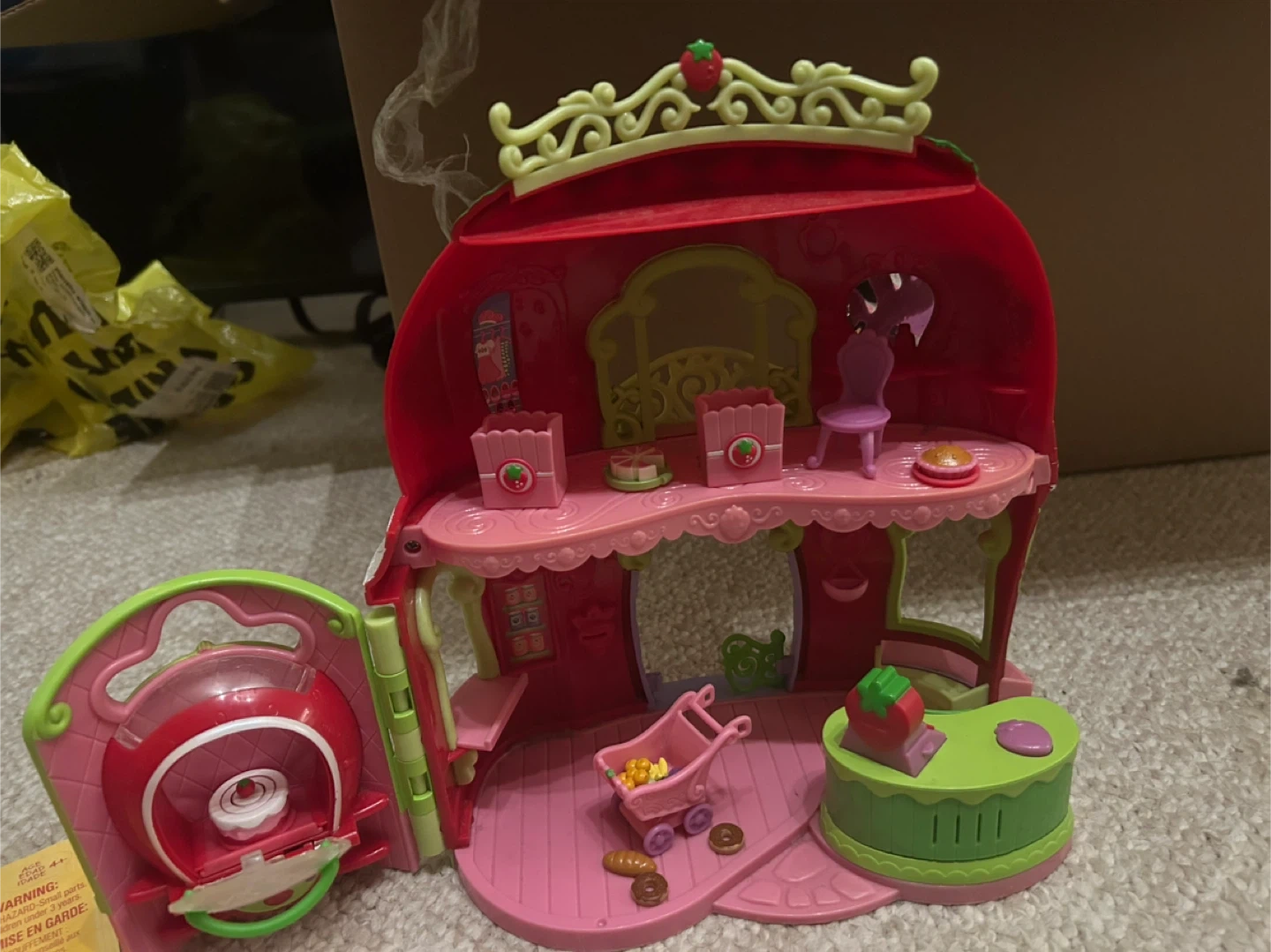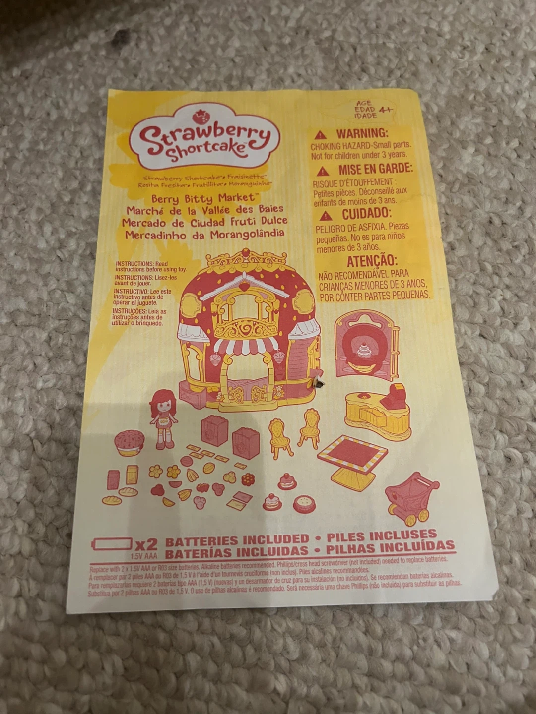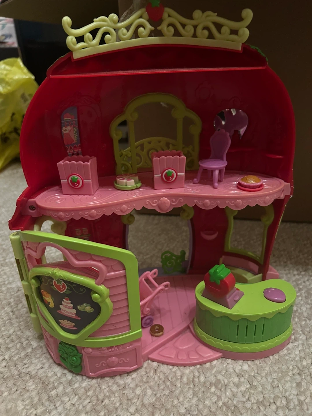 This is the Strawberry Shortcake Berry Bitty Market playset. It includes furniture, and accessories. This playset is suitable for children aged 4 and up.