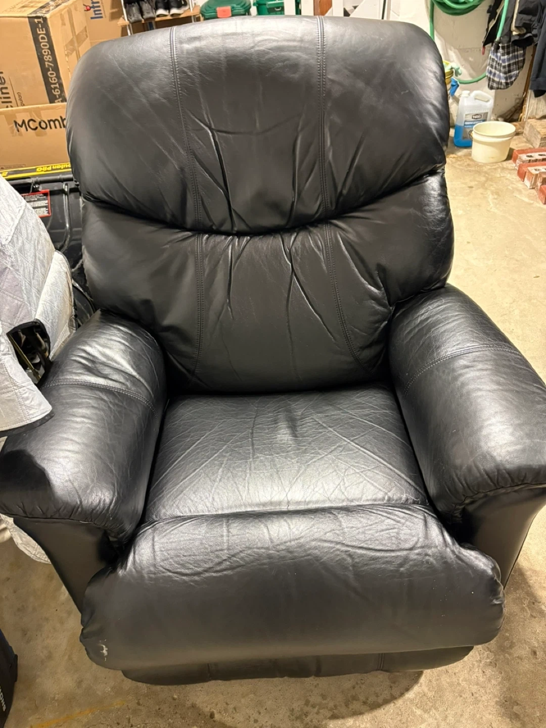Buy & SellBlack Leather Recliner ChairBlack Leather Recliner Chair$60This is a black leather recliner chair. Manual Was always covered. Good condition $60ConditionGoodWHERE TO MEETCheck LocationView MapSELLERGabriellaWoodbridge150 reviews0 chats·0 favorites·27 viewsSEND CHAT TO SELLERHi Gabriella! I’m interested in your listing.Hi Gabriella! I’m interested in your listing.Get the Karrot app to chatSign In to chat