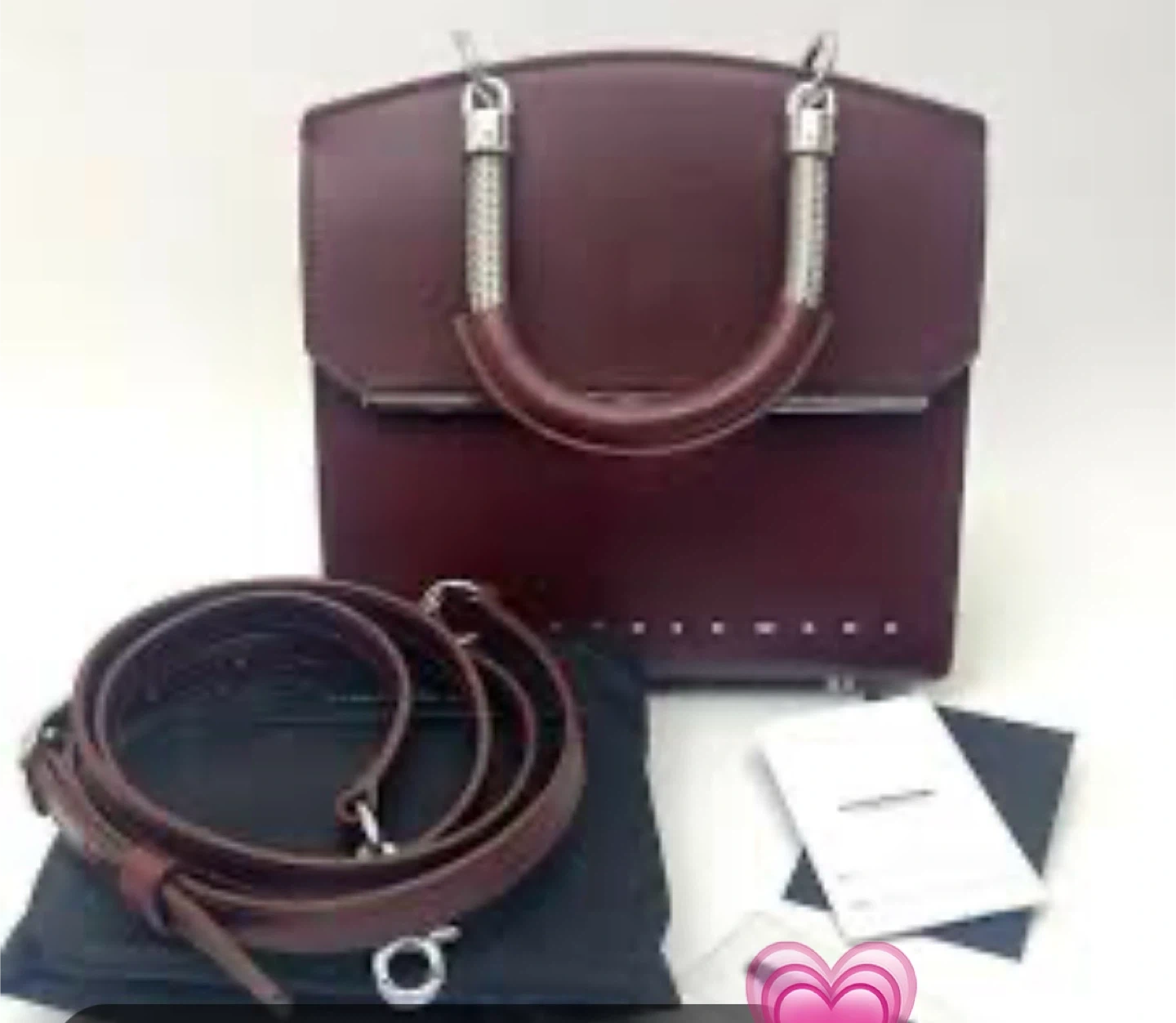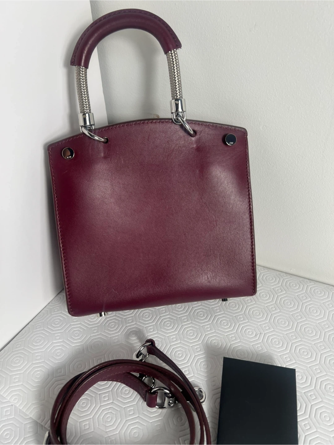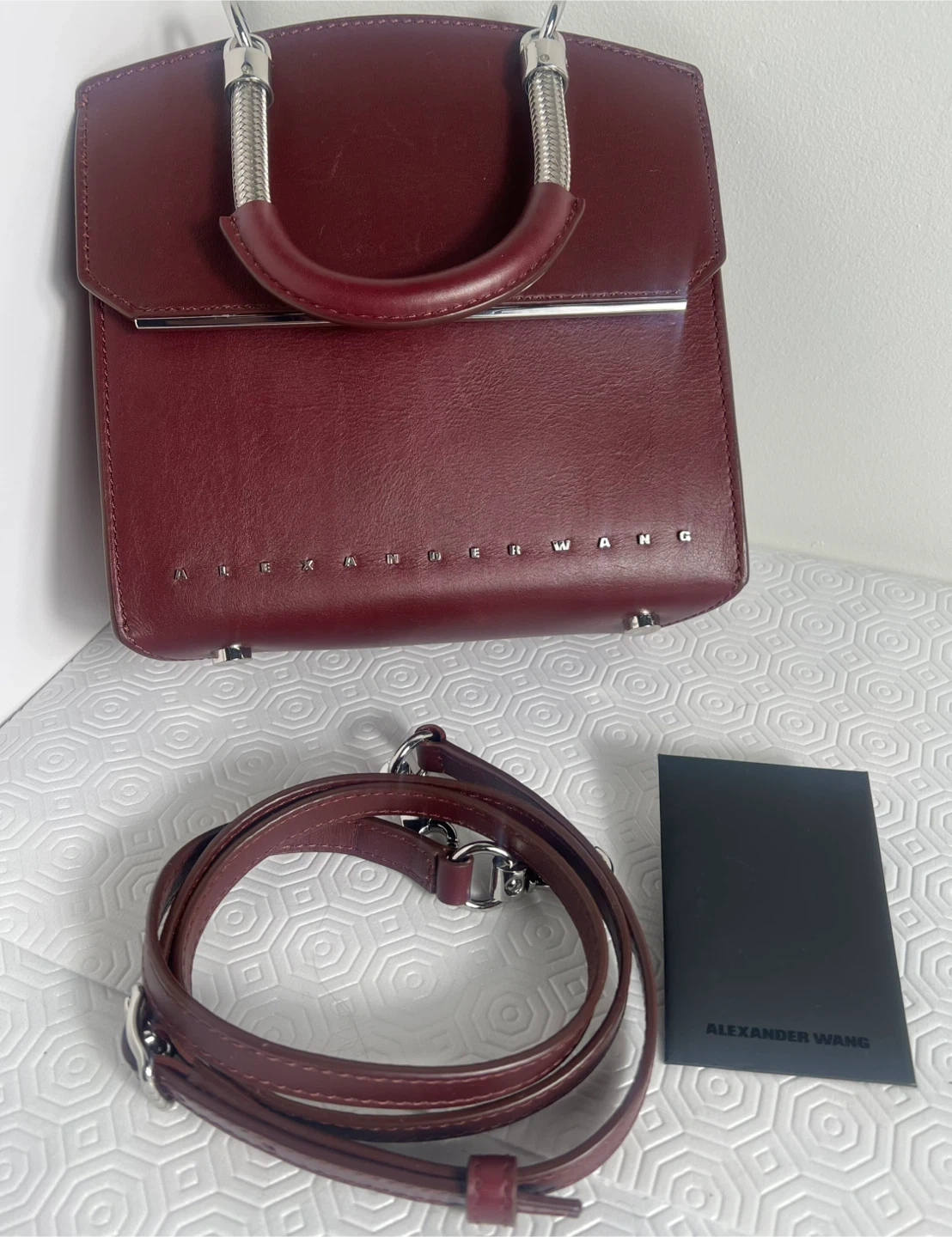Beautiful Alexander Wang satchel bag in a deep maroon leather. It features silver-toned hardware and decorative studs along the front. Comes with a detachable shoulder strap and dust bag. 7x7
