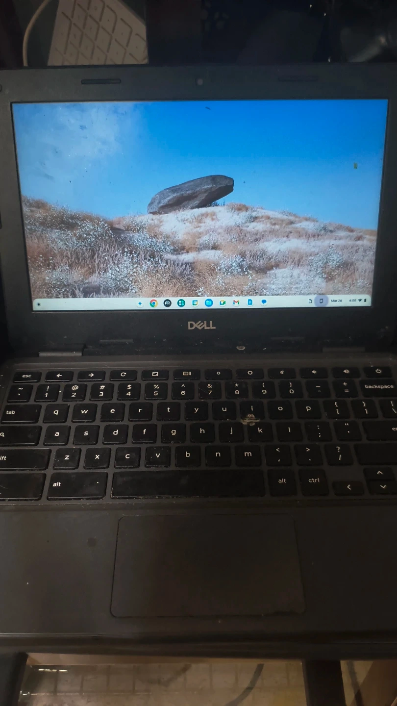 This is a used Dell Chromebook laptop. It runs on Chrome OS and features a standard QWERTY keyboard layout. Perfect for everyday tasks and browsing!