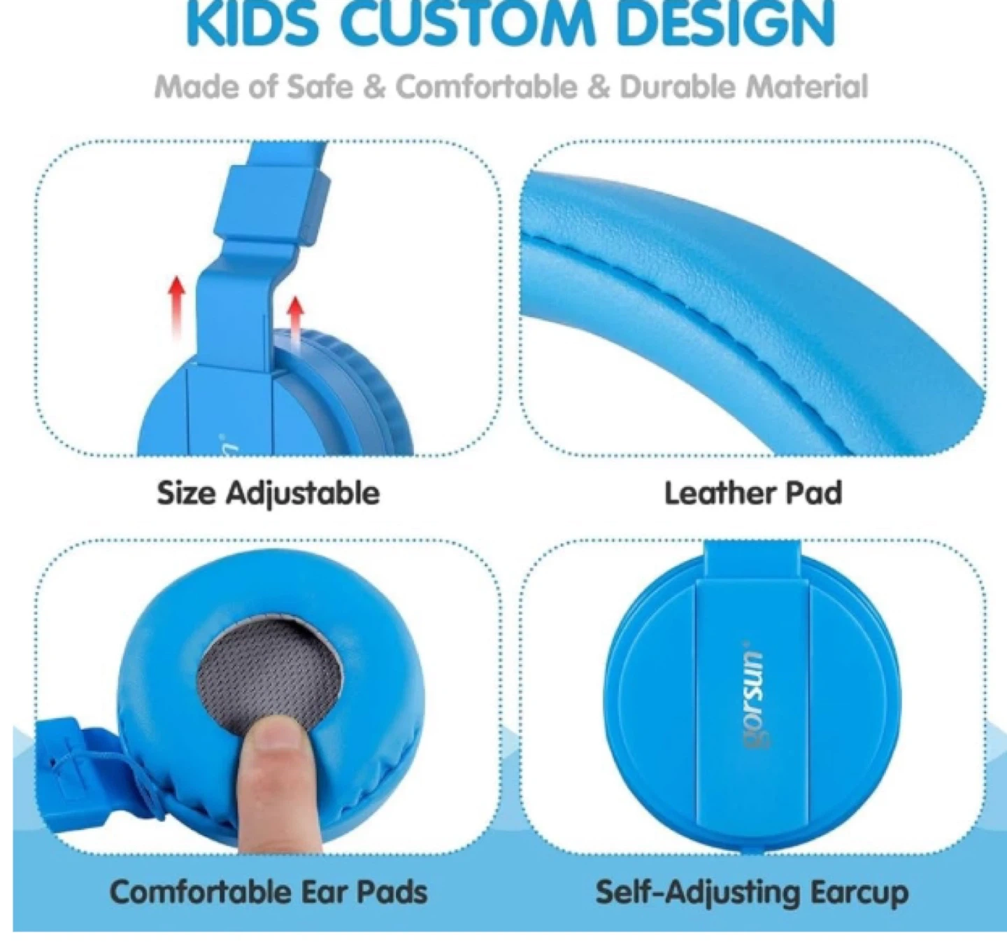 These ONTA headphones are designed for kids with a comfortable, adjustable fit and leather ear pads. They feature a tangle-free elastic cable and a 3.5mm audio jack compatible with most devices. Built with food-grade material for durability!