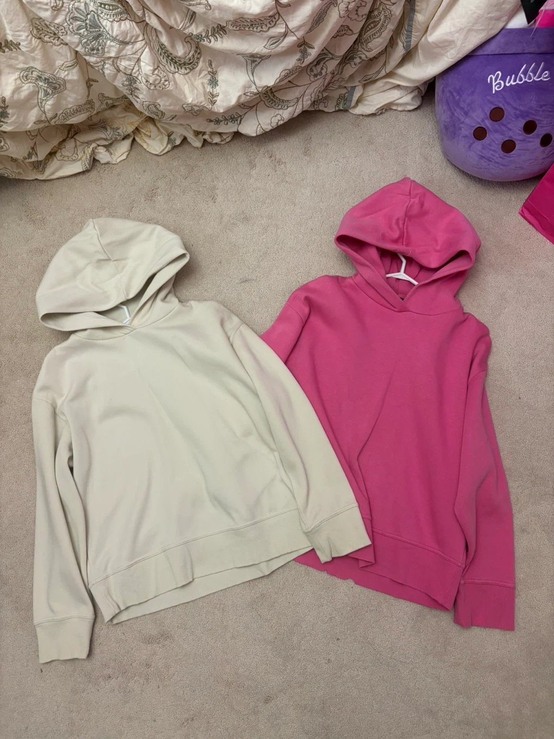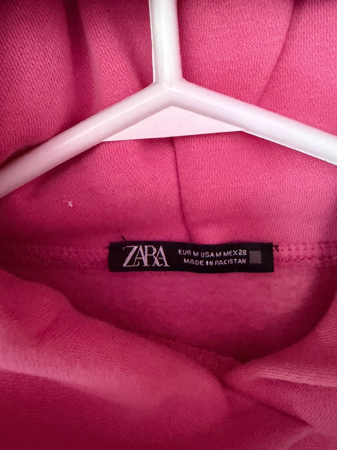 Two comfy ZARA hoodies. One in a neutral beige and the other in a bright pink. Both are size medium. Great for casual wear!