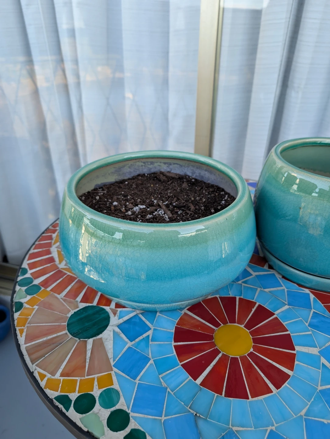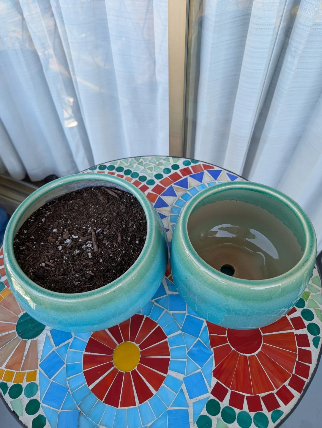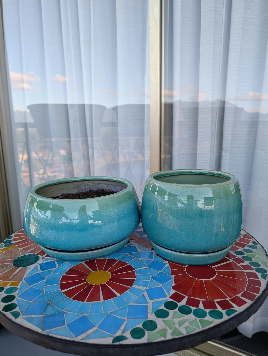2 Turquoise/Green Asian Style Ceramic Pot w/ Drainage
