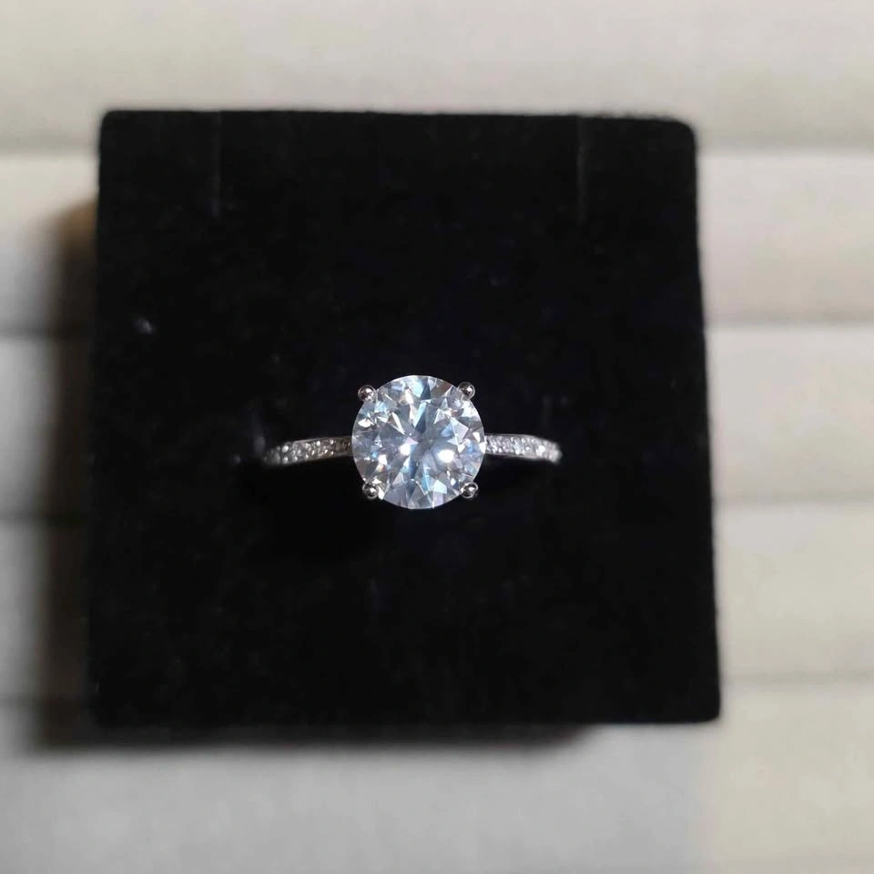 Brand new 2 carat Moissanite ring with a pave band. Features D Color, VVS Clarity, and is made of Sterling Silver. It's hypoallergenic and has an adjustable band. Diamond tester passed. Sparkles like a diamond — perfect for everyday luxury, bridal gifts, or timeless elegance. Pickup in East Vancouver.