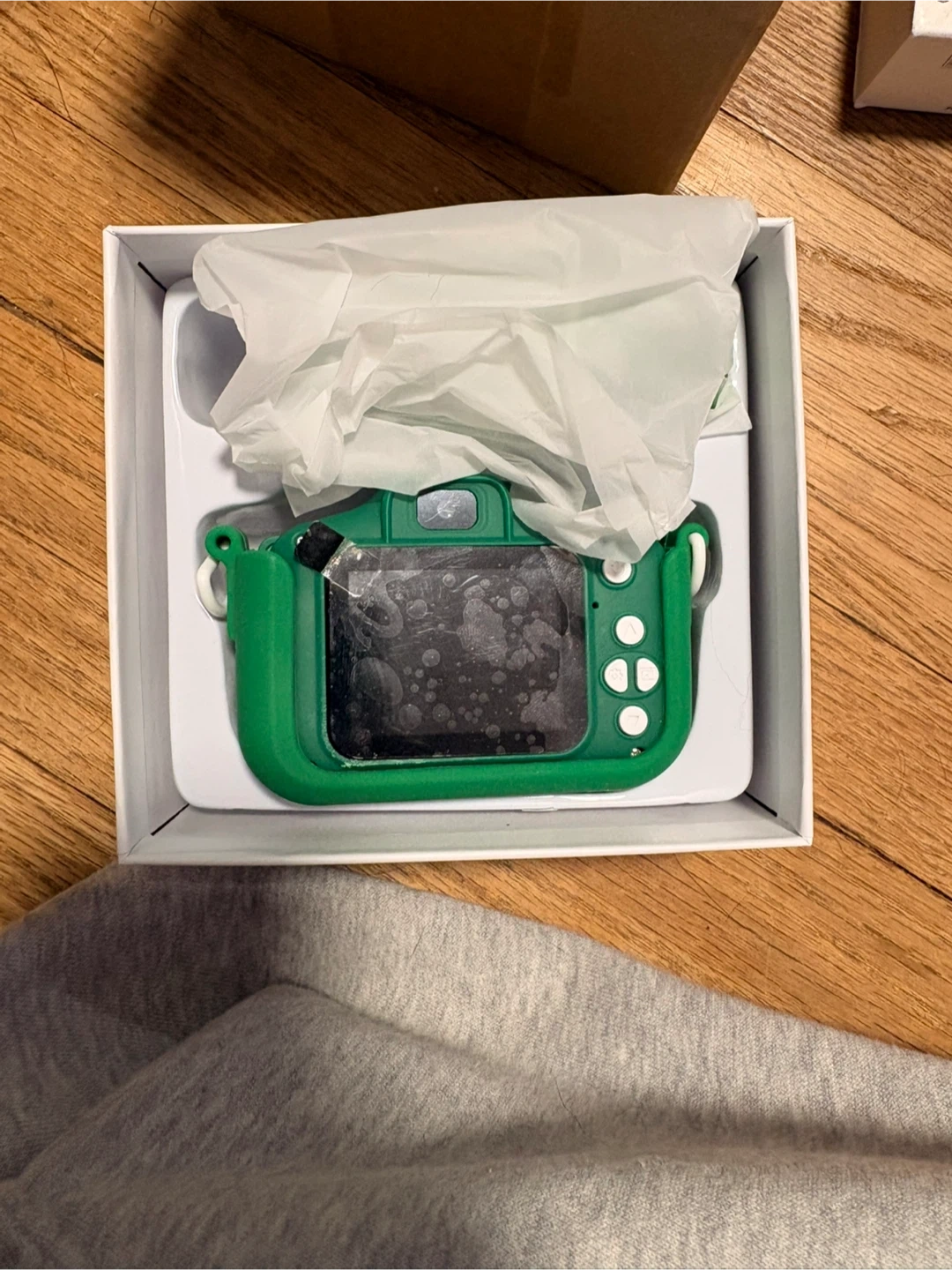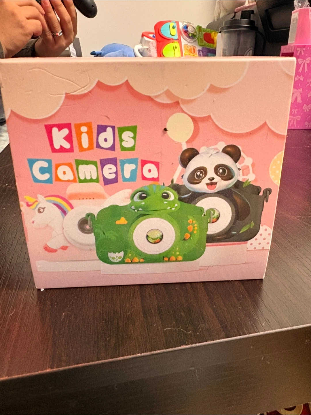 This is a fun green kids camera shaped like a dinosaur. It's designed for children and comes in its original box. This camera is great for sparking creativity in little ones! With 1080P resolution and stunning pictures that your child can take.