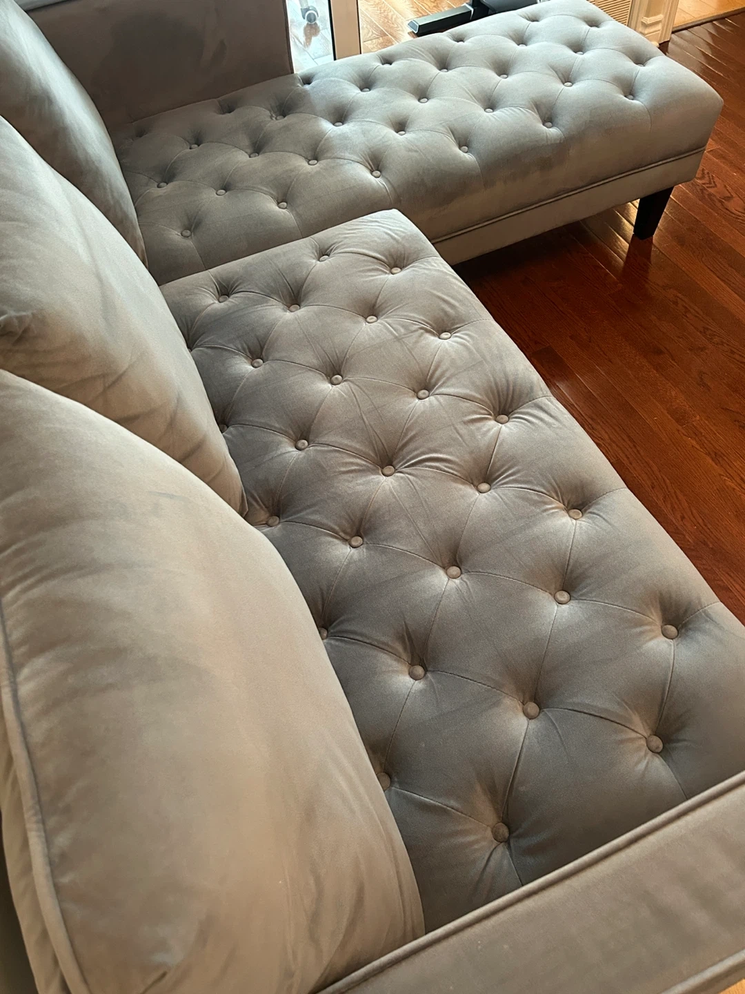 Very comfortable L-shaped sofa for sale. The original price was $899 + tax, and we have used it for 3 years. We are selling this because we are moving into a smaller place