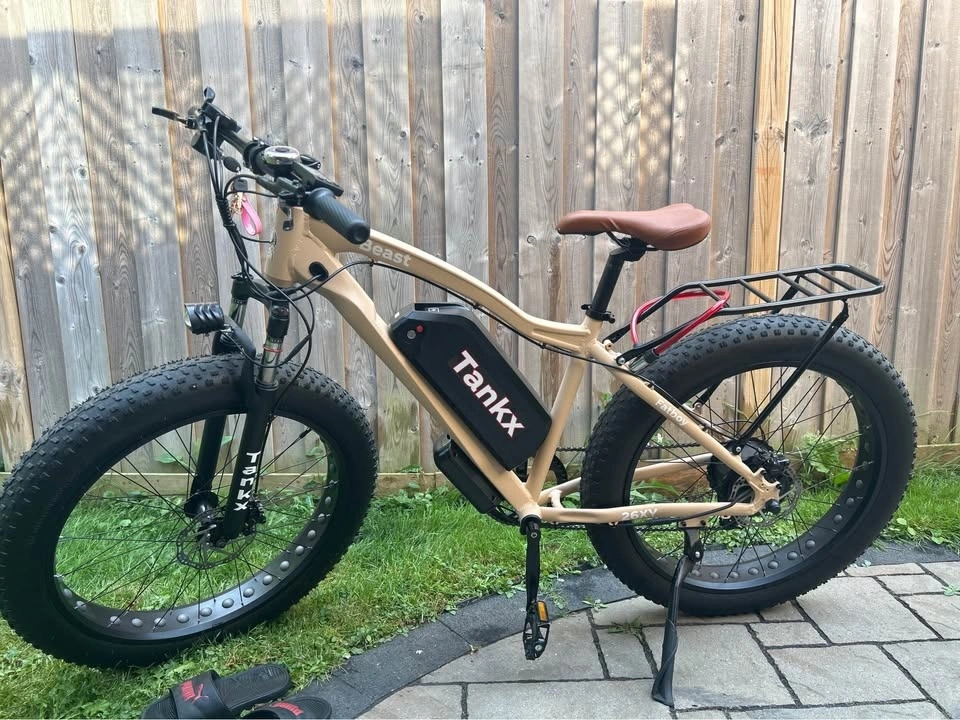 Selling my Tankx Beast fat tire e-bike Limited Edition in great condition. Bought new last June for $1,300 (listed for $1,500) and used only over the summer — just 500 km on it.