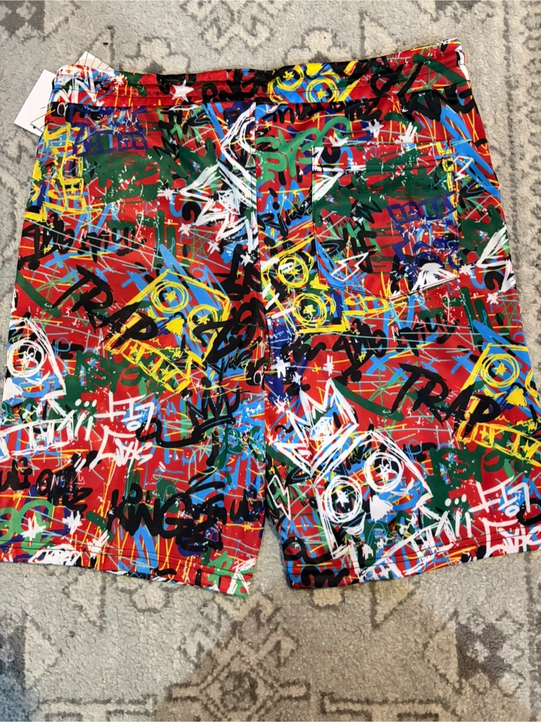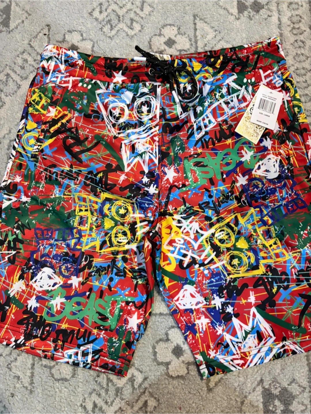 20These Psycho Bunny swim trunks are a vibrant addition to your summer wardrobe! The size is large, and they feature a colourful, graffiti-inspired design. Perfect for the beach or pool!