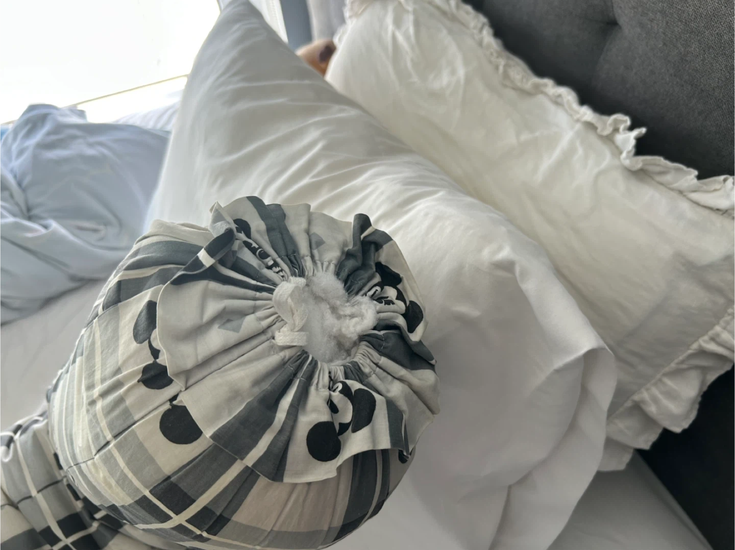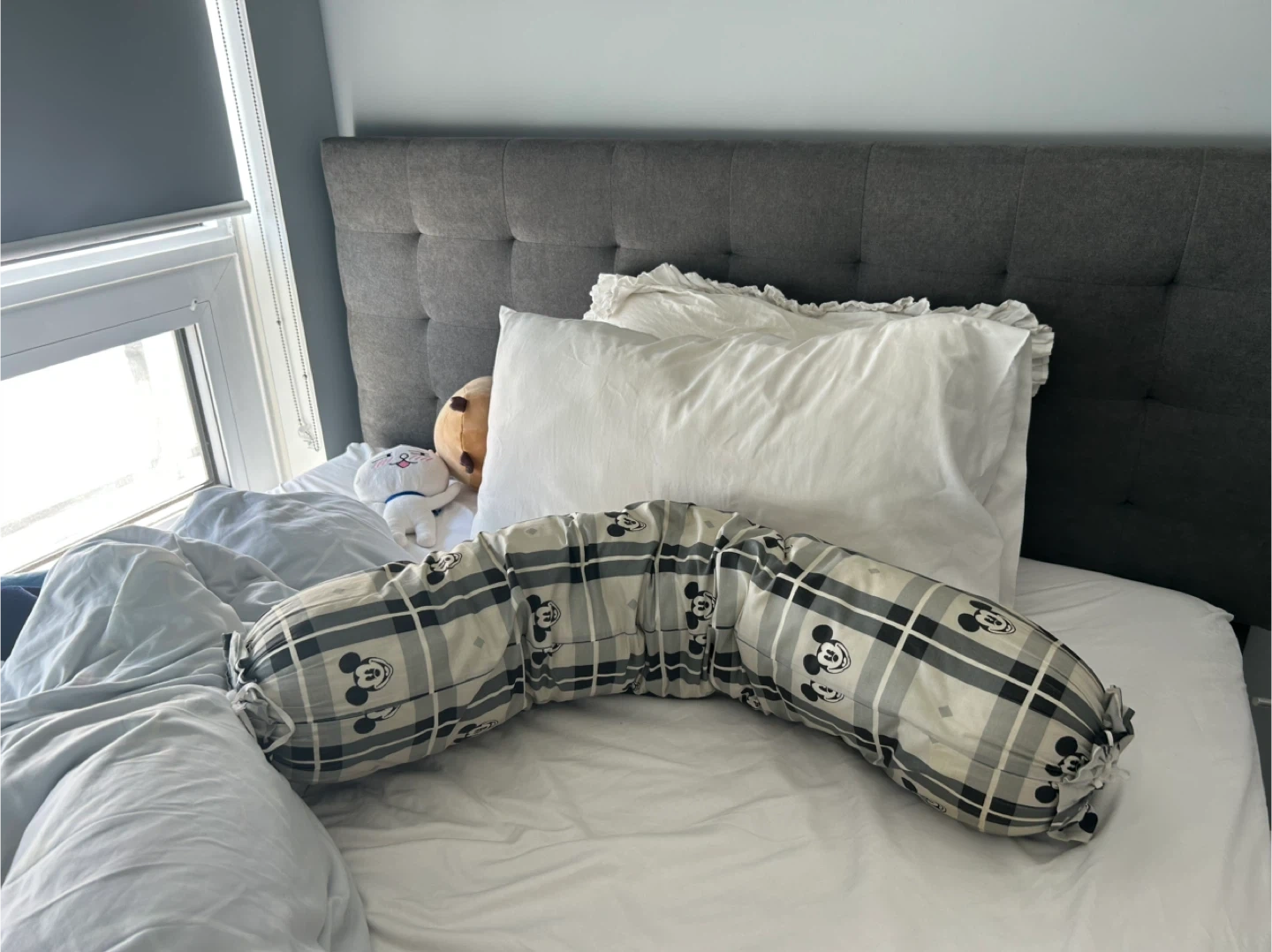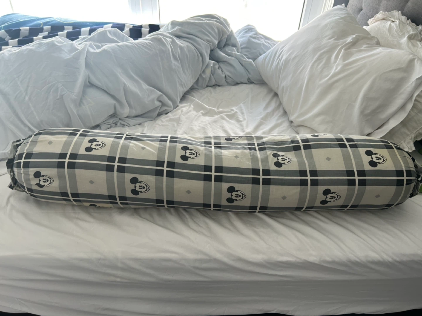Bearaby Body Pillow - This Disney bolster pillow features a fun Mickey Mouse plaid pattern. It's great for adding extra comfort and support to your bed or sofa. The pillow is filled with soft stuffing for a plush feel.