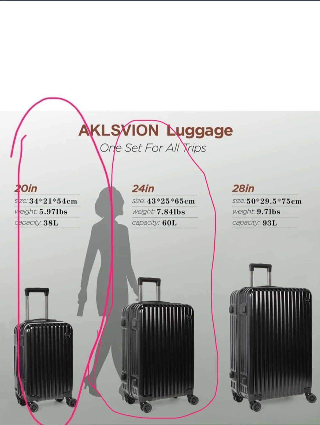 AKLSVION Luggage Set - 20in, 24in Black