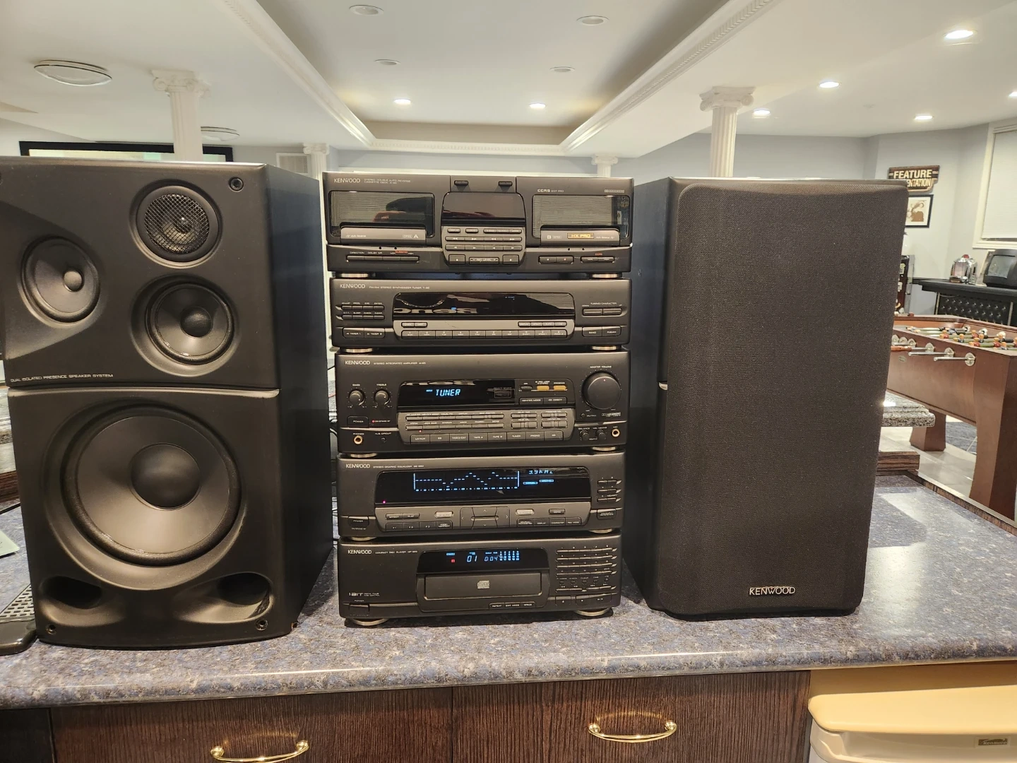 Selling a Kenwood stereo system. Includes a tape deck, tuner, amplifier, equalizer, and CD player. Also comes with speakers. Great for anyone looking for a vintage audio setup